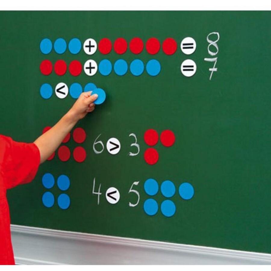 De magnetische schijven van 5 cm in rood en blauw zijn perfect voor het rekenonderwijs in de klas. Met deze set van 100 schijven kunnen leerlingen gemakkelijk hoeveelheden herkennen, delen en rekenen. De tweekleurige schijven maken het visueel aantrekkelijk en helpen kinderen om rekenprocessen beter te begrijpen door ze zelf te draaien en te verplaatsen. Ideaal voor gebruik op het bord, vooral in combinatie met magnetische rekenstrips. Een praktische en effectieve manier om jonge leerlingen te helpen bij hun rekenvaardigheden.