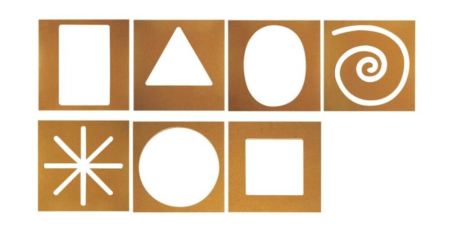 - 7 sjablonen: cirkel, vierkant, driehoek, ovaal, rechthoek, spiraal, ster