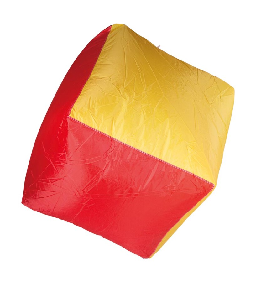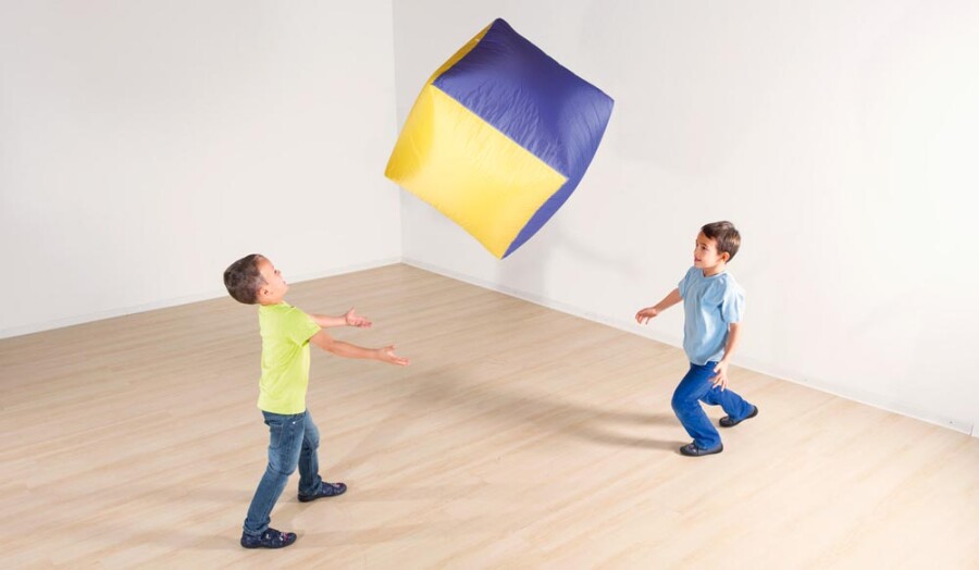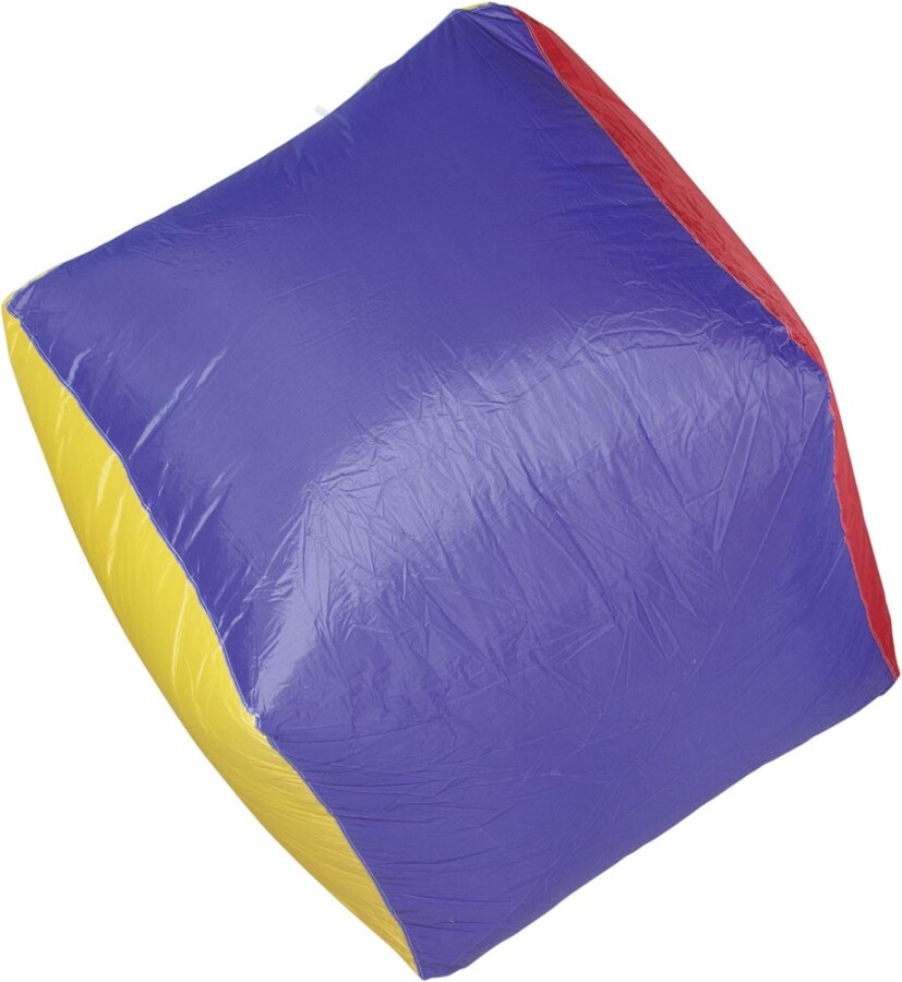 Deze grote luchtkubus zorgt voor vrolijke groepsactiviteiten en veel lachmomenten. Gooi, tik of hou hem samen in de lucht. De kubus is licht, maar verrassend robuust. Opblazen gaat makkelijk met een haardroger.
