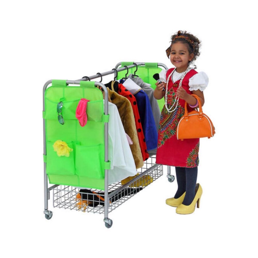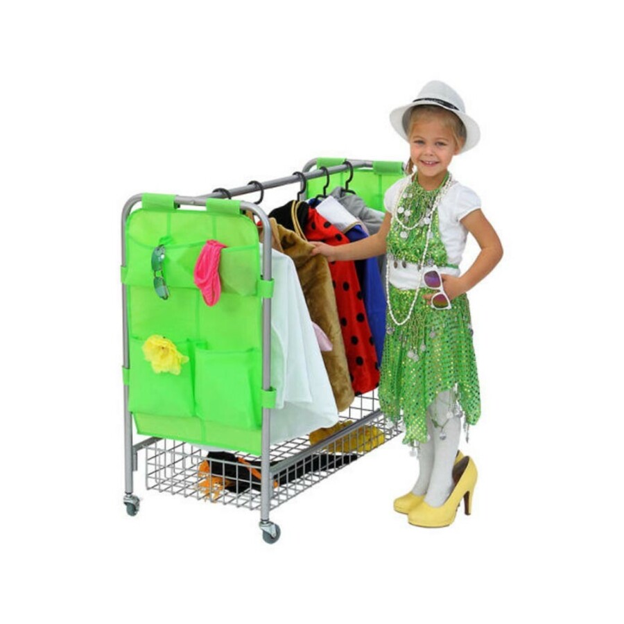 Deze mobiele kostuumgarderobe is perfect voor scholen en kinderopvanglocaties. Het biedt een handige en overzichtelijke manier om verkleedkleren en accessoires netjes op te bergen. Met een kindvriendelijke hoogte van 86 cm kunnen kinderen zelf hun kostuums ophangen en opruimen, wat hun zelfstandigheid en motorische vaardigheden bevordert. De garderobe heeft zijvakken voor kleinere items en een onderrek voor schoenen. Dankzij de wieltjes is de garderobe makkelijk verplaatsbaar, en de stevige metalen constructie zorgt voor langdurig gebruik.