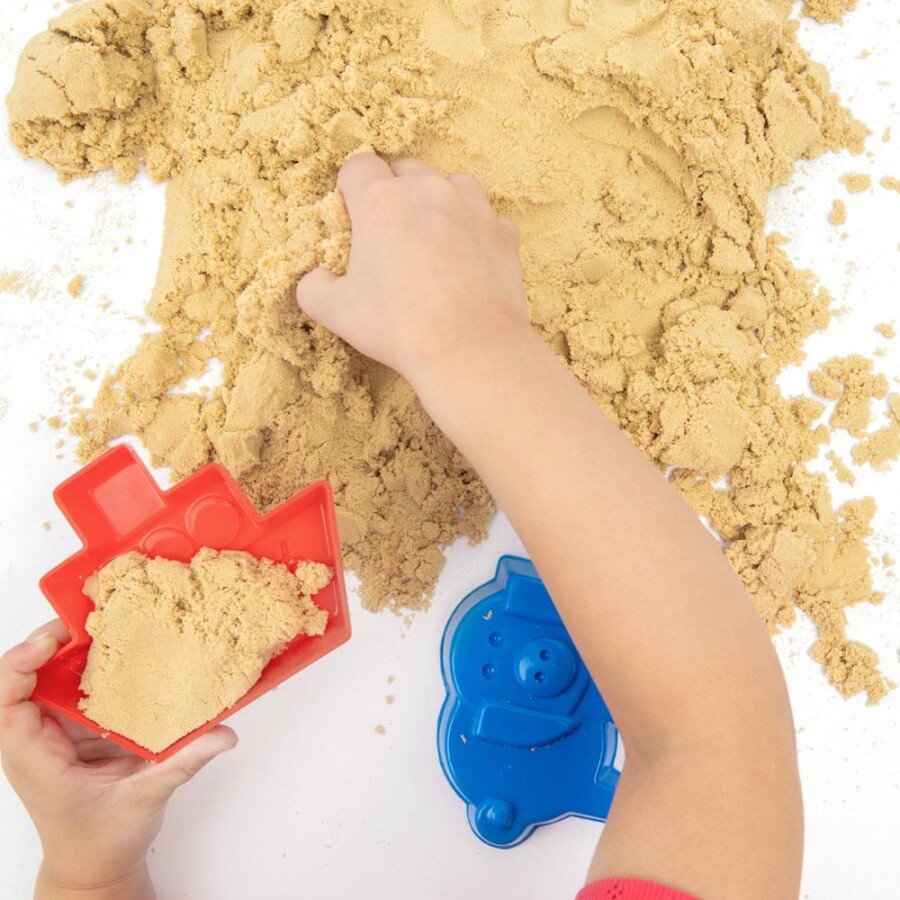 Binnen spelen met zand, zonder rommel: deze kinetische variant plakt aan zichzelf, niet aan handen. Hij vloeit prachtig door de vingers en vormt toch stevige bouwwerken. Ideaal voor creatief spel, rekenen met delen en werken aan fijne motoriek. Droogt niet uit, maar bewaar hem gesloten tegen stof. Geschikt voor thuis en de klas.