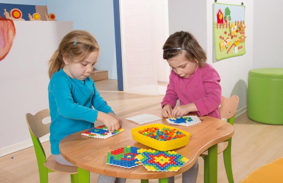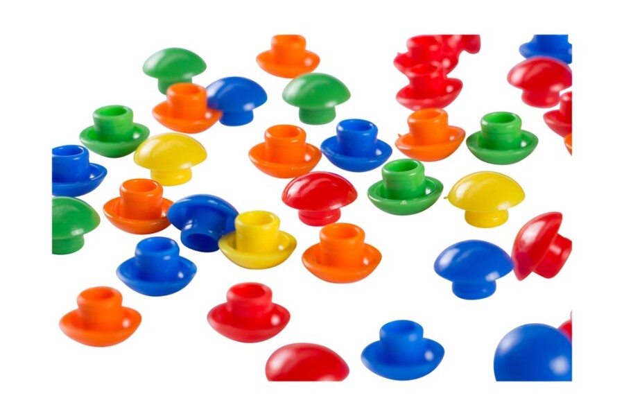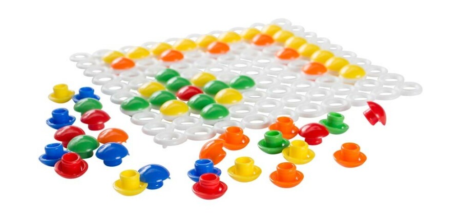 Klaar voor de hele klas: ringplaten en knoppen voor direct starten met mozaïek. De drukknoopjes klikken licht in de elastische platen, en vormen blijven netjes liggen. Werk aan kleurherkenning, tellen en symmetrie. Leg platen aan elkaar voor grotere ontwerpen. Geschikt voor zelfstandig en coöperatief werken.