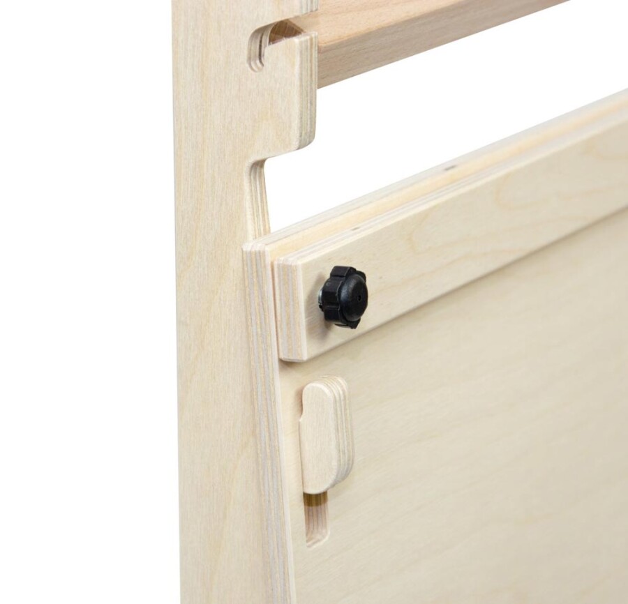 Maak van een wand een atelier: deze ezel hangt stevig en is klaar voor dagelijkse creativiteit. Papier trek je van de rol en klem je strak vast. De bekerrail biedt plek aan vijf potjes voor verf of water. Kinderen leren staand schilderen en merken hoe verf op papier reageert. Gemaakt van duurzaam berkenmultiplex, netjes afgewerkt.