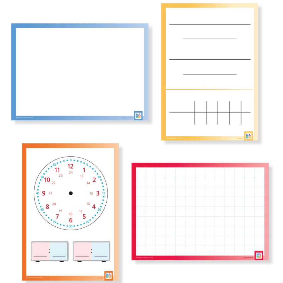 Voor elke leerling zijn er 2 Nano Wisbordjes met zowel de voorkant als de achterkant bedrukt. Wordt geleverd in 30-voud, zodat 30 leerlingen met beide wisbordjes kunnen werken.