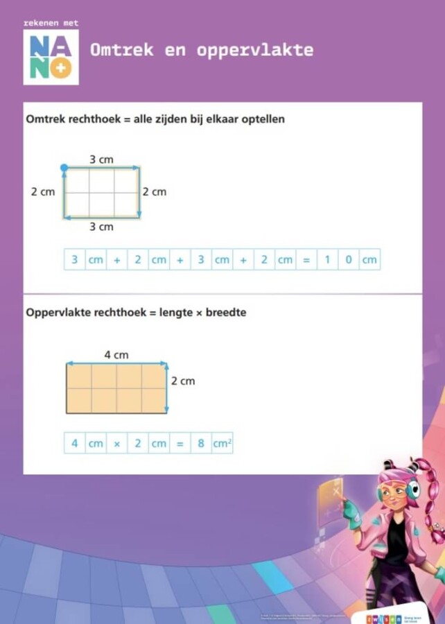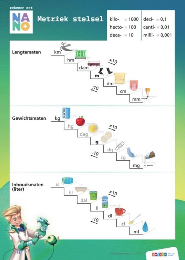 Twee A1-posters: de Rekenmuur met overzicht van rekendoelen en een poster met belangrijke begrippen en schema’s. Ondersteunt de rekenles en maakt de structuur van Nano zichtbaar in de klas.