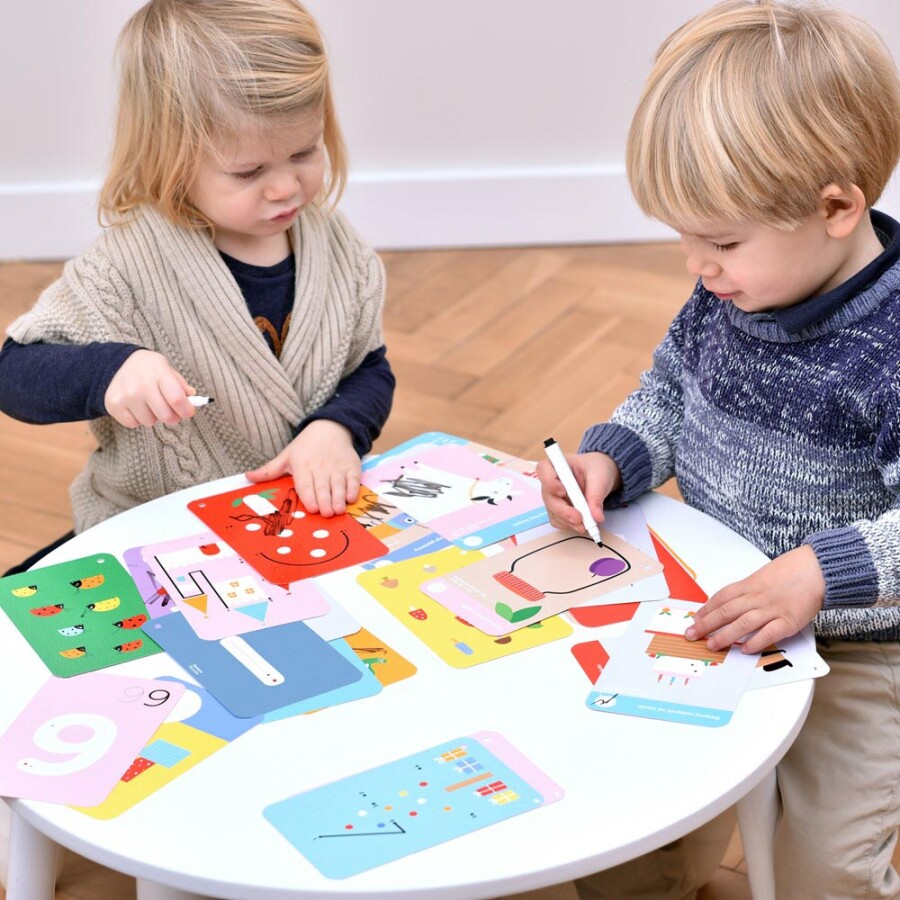 Kinderen kunnen hun schrijfvaardigheid verbeteren door lijnen over te trekken, stippen te verbinden en vormen na te tekenen. Ouders en opvoeders kunnen deze kaarten gebruiken om concentratie en creativiteit bij hun kinderen te ontwikkelen.