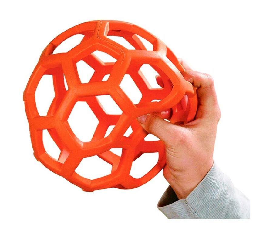 De open structuur maakt deze rubberen bal extra makkelijk te grijpen en te werpen. Zelfs kleine handen krijgen meteen succeservaringen. Gebruik hem voor tikspellen, rollen of improvisatie-bowling. Buigzaam materiaal geeft vertrouwen en nodigt uit tot bewegen.
