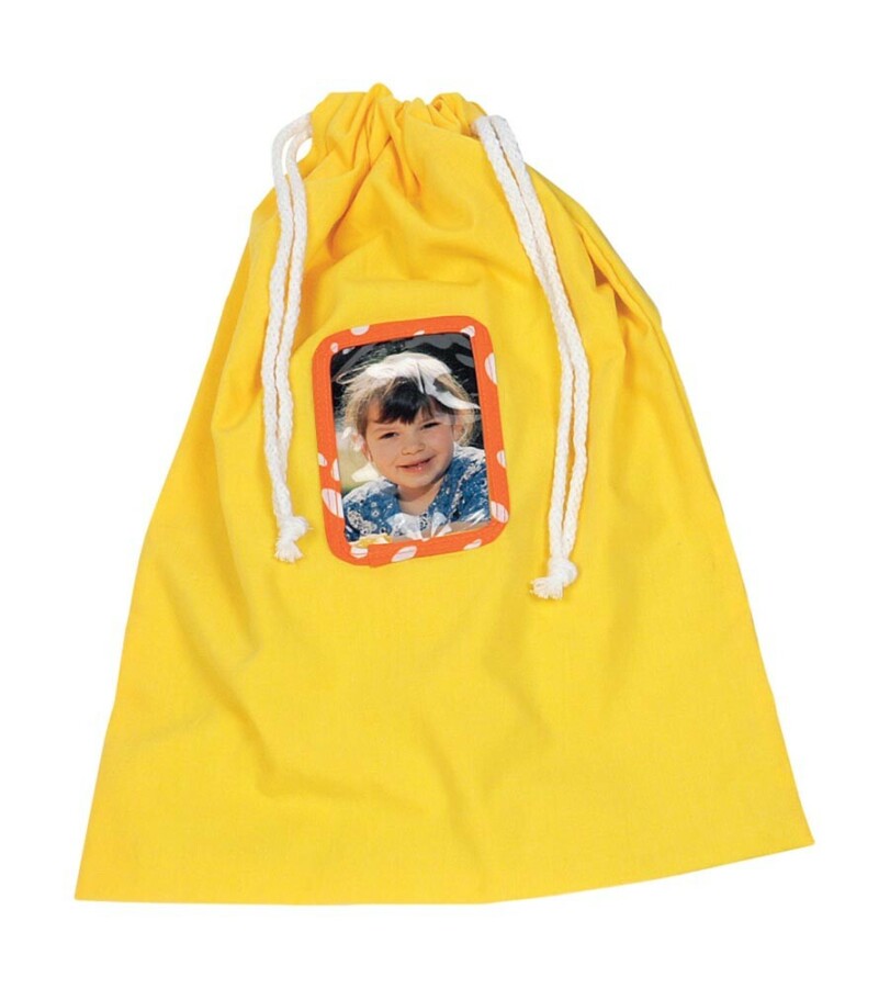Deze katoenen opbergtas met fotovak helpt kinderen hun spullen zelfstandig terugvinden. Schuif een foto of naamkaartje in het vakje. Ideaal voor gymschoenen, reservekleding of speelmateriaal. De stevige stof kan tegen een stootje.