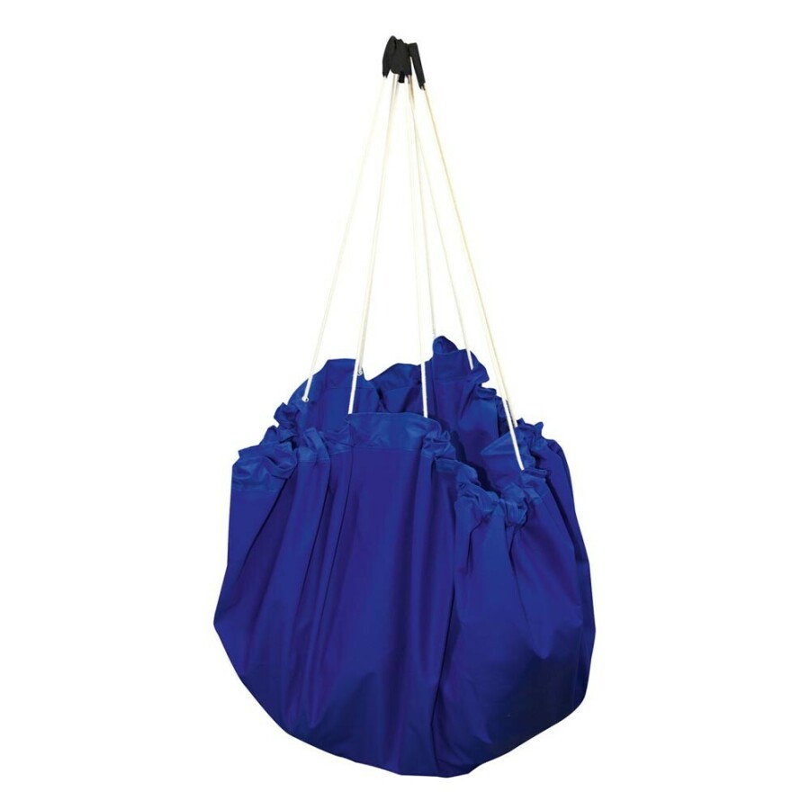 Met deze speel- en opbergtas is de vloer zo weer vrij. Leg het speelgoed op de ronde mat en trek de koorden aan. Alles zit netjes bij elkaar en draag je zo naar de kast. De blauwe stof voelt prettig aan en kan tegen een stootje. Kinderen gebruiken de mat ook graag als speelplek voor auto's en blokken. Na het spel maak je er in één beweging een tas van. Handig voor thuis, BSO en kleutergroep. Wassen kan op 30°C.