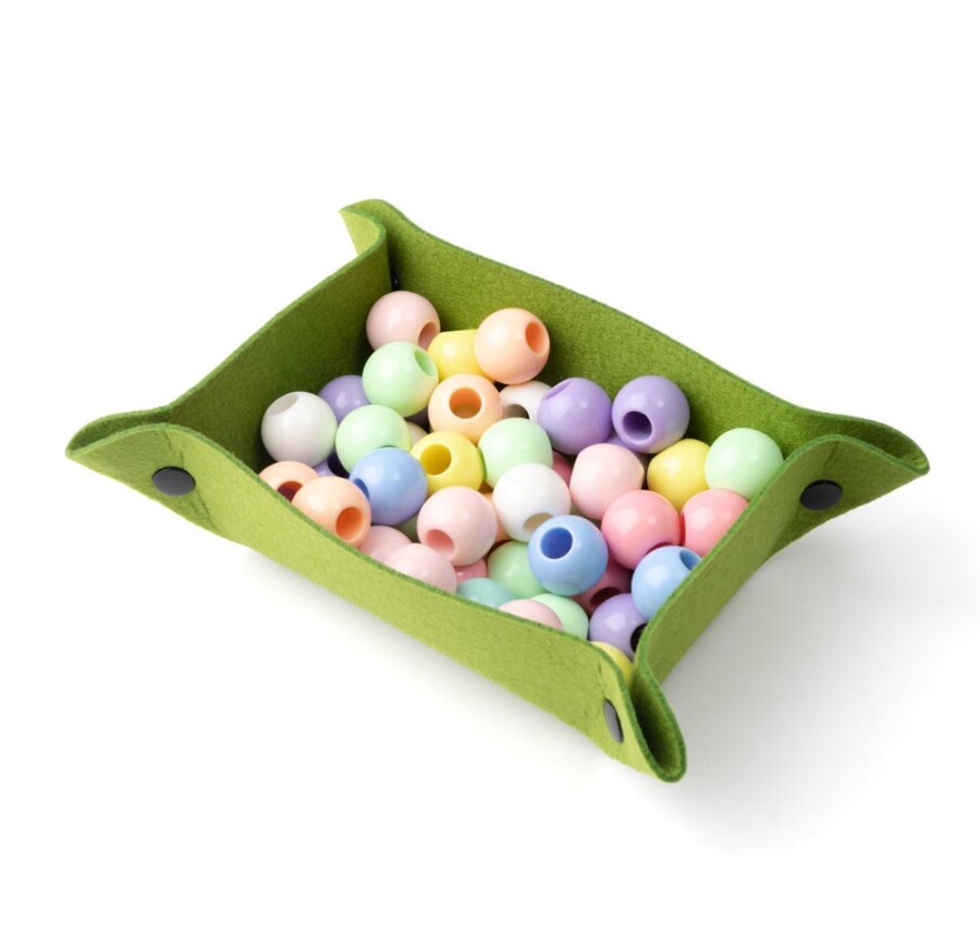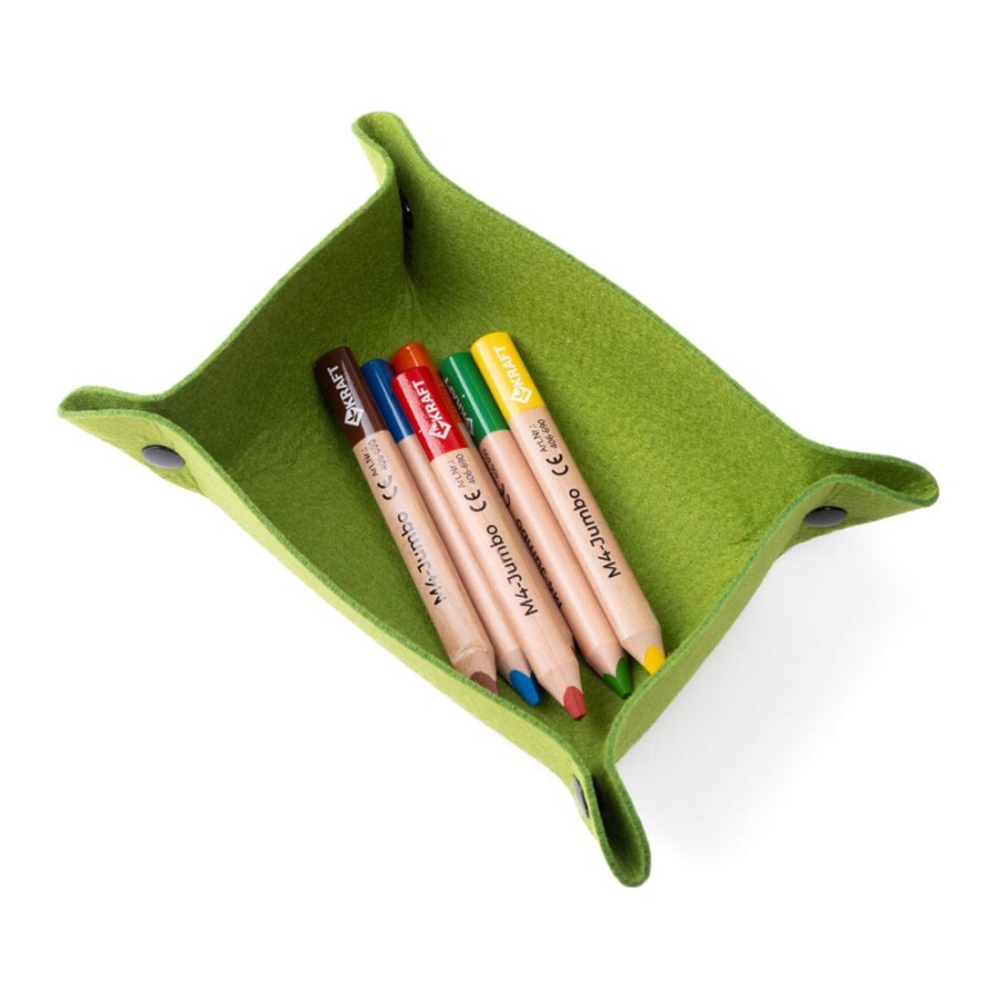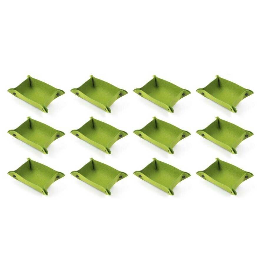 Deze set geeft elke tafel snel extra structuur en rust. Vouw met de druppnnoopjes stevige bakjes voor sorteren, tellen of kleine schatten. Open je ze plat, dan dienen ze als stille dobbel- of onderleggers. Het slijtvaste materiaal is wasbaar en blijft lange tijd mooi groen. Na gebruik kunnen ze helemaal plat terug de kast in.