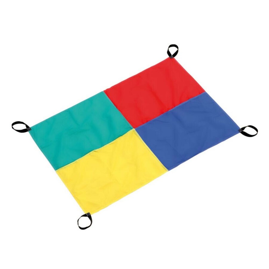Parachute Doek - de perfecte aanvulling voor actieve spelletjes en ritmische oefeningen met kinderen. Dit rechthoekige doek van 85 x 130 cm is geschikt voor zowel binnen als buiten. Het heeft vier handgrepen, waardoor het ideaal is voor groepsactiviteiten. Of je nu beweging stimuleert of samen ritmische spelletjes doet, dit doek biedt eindeloos speelplezier.