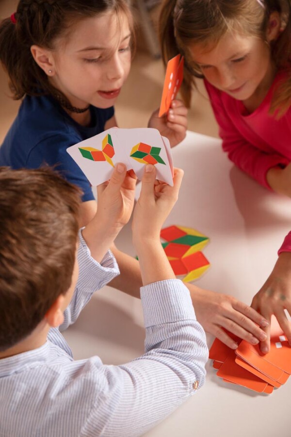 Tactisch legspel voor minimaal twee spelers. Leg om de beurt een ruit aan het centrale patroon. Je scoort wanneer jouw kaart precies wordt voltooid. Spannend tot de laatste zet en snel uit te leggen. Ideaal voor patroonherkenning en plannen.