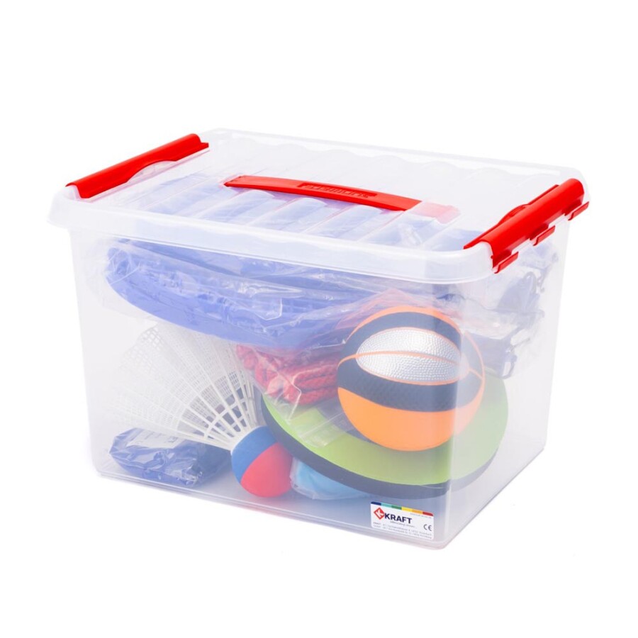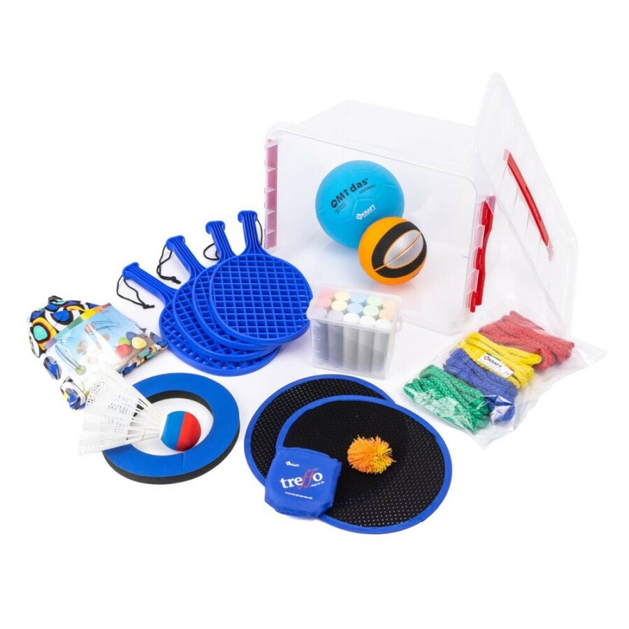 Een complete pauzekist die het schoolplein direct in beweging zet, zonder voorbereiding of gedoe. Voor ieder wat wils: rennen, mikken, slaan, tekenen en samen spelen. De materialen zijn stevig, pakken fijn vast en kunnen tegen een stootje buiten. Na de pauze verdwijnt alles snel terug in de robuuste box met handgreep. Ook binnen in de gymzaal of BSO werkt deze set uitstekend.