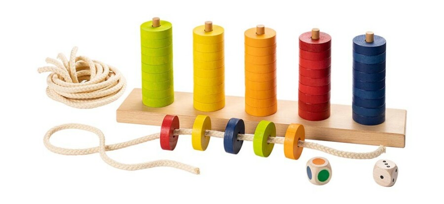 Kinderen bouwen patronen, stapelen en rijgen kralen met stevige schijven en koorden. Je oefent optellen en aftrekken zichtbaar. De hoogte van elke schijf is 1 cm, dus maatgevoel groeit vanzelf. Het stevige bord houdt alles overzichtelijk, in de klas en thuis. Spelregels en varianten nodigen uit tot samenwerken en vrij spel.