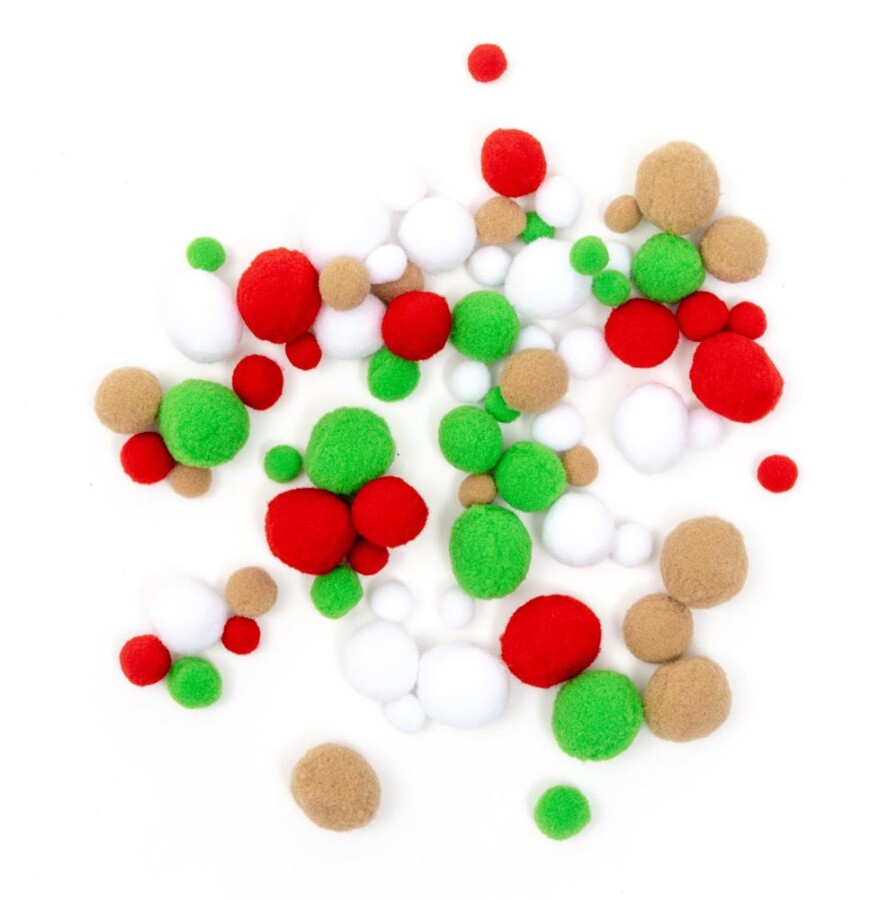 Specificaties van Pompoms | Kerstkleuren | 10 - 25 mm (78 st.)