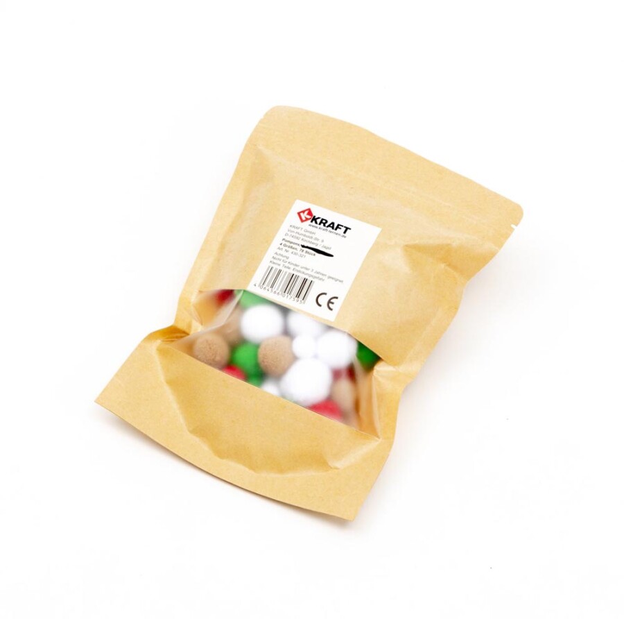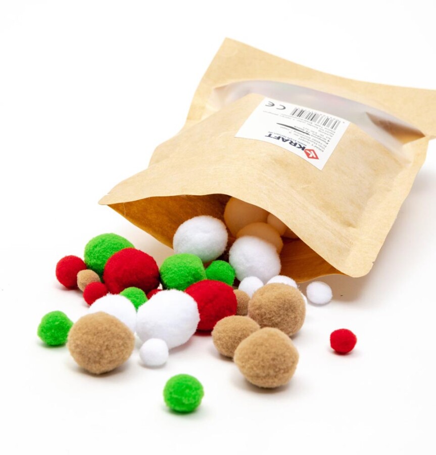 Deze compacte set bevat 78 fluweelzachte pompons in kerstkleuren en vier maten. Perfect voor kaarten, mini-kransen, tafeldecoraties of kleine figuren. Het lichte teryleen voelt zacht aan en is makkelijk te lijmen. Handig als startpakket voor een gezellige knutselles of middag thuis. Alles zit samen in een hersluitbare papieren zak.