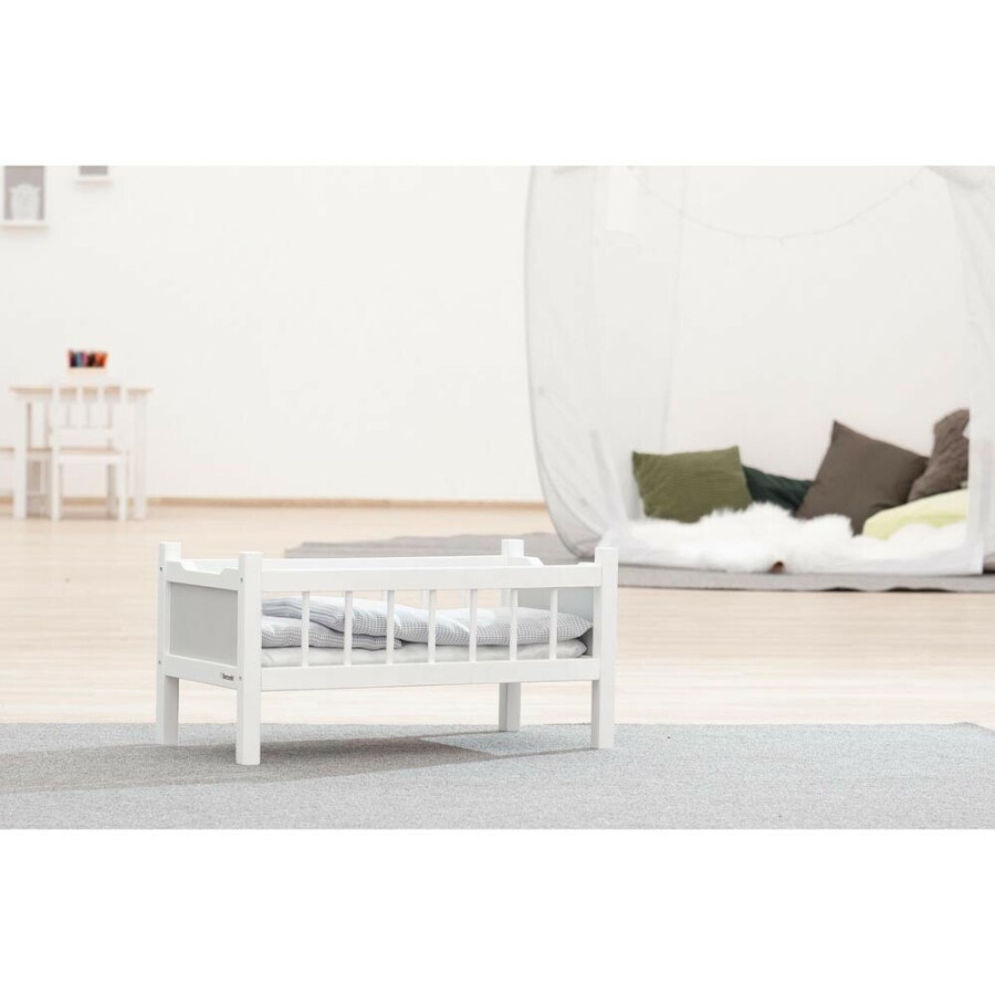 Dit stevige poppenbed van 57 cm is perfect voor dagelijks gebruik in kinderdagverblijven en kleuterscholen. Gemaakt van duurzaam beukenhout, biedt het een veilige en comfortabele slaapplek voor poppen tot 48 cm groot. Het bed wordt geleverd met een matras, kussen en deken van 100% polyester, die gemakkelijk op 30°C gewassen kunnen worden. Dankzij de duidelijke montage-instructies is het bed snel in elkaar te zetten. Let op, poppen zijn niet inbegrepen.