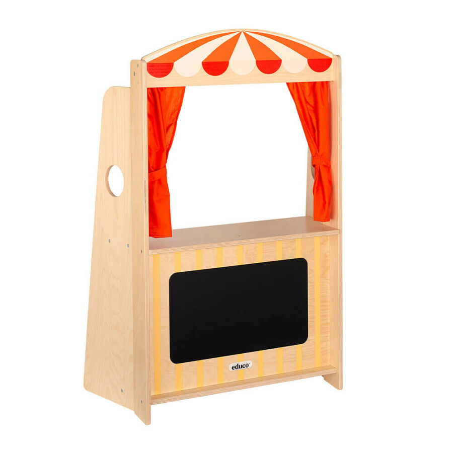 Maak je eigen verhaal met dit grote poppentheater van Educo. Werken met de poppenkast draagt bij aan het uitlokken van communicatie, het stimuleren van interactie en verbeelding, de taalontwikkeling waaronder het vertellen van verhalen en een goede luisterhouding.