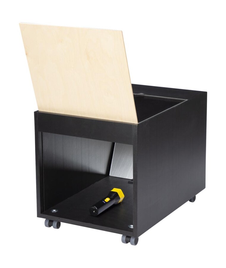 Compacte projectiedoos voor onderzoek naar licht en schaduw, zonder stopcontact. De lichtbron is verplaatsbaar, zodat de lichtweg zichtbaar wordt. Gebruik een zaklamp en losse materialen voor verrassende beelden. Stevig genoeg voor de klas én mobiel inzetbaar.