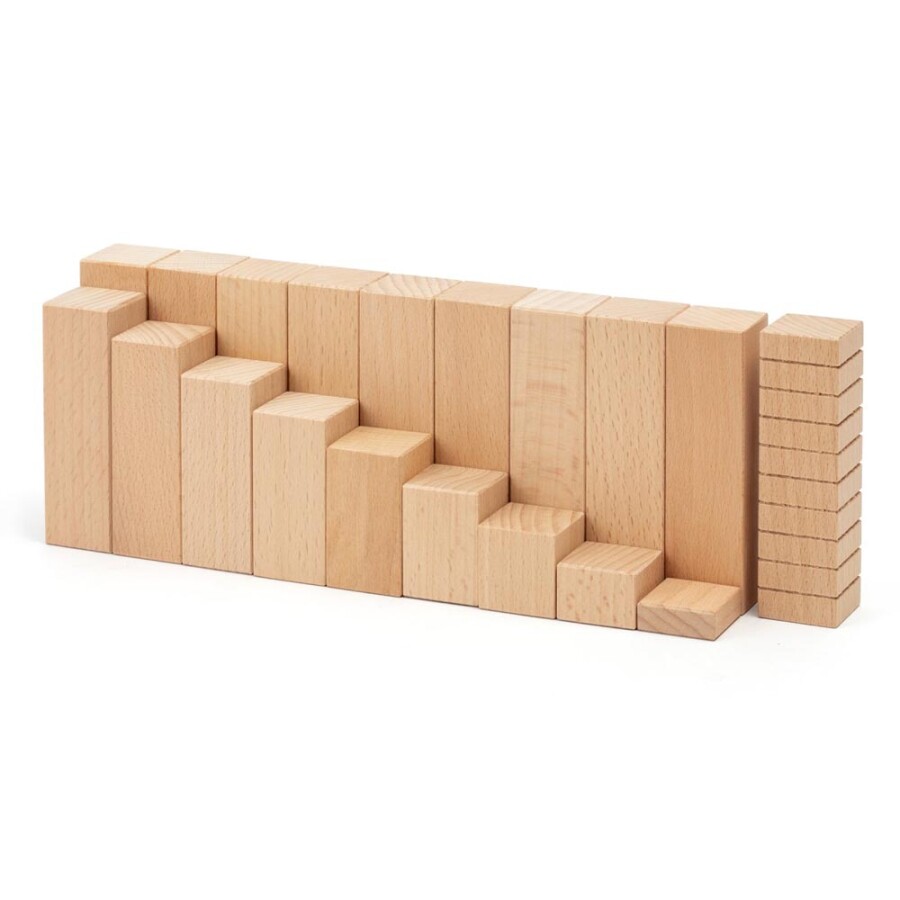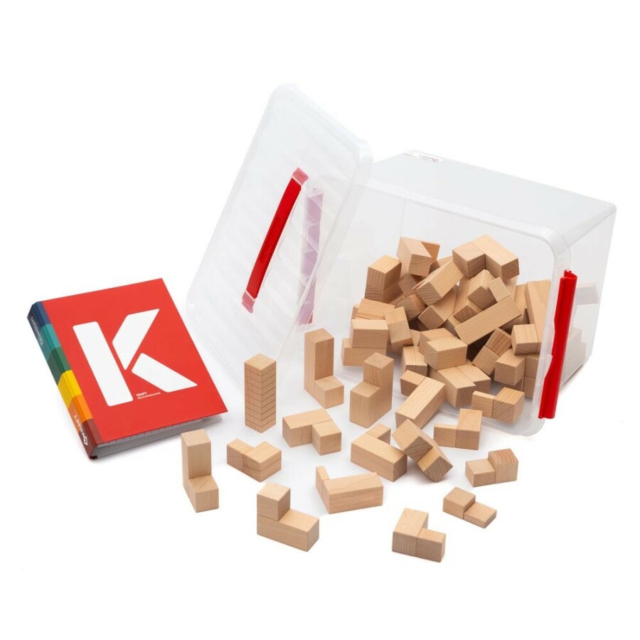 Kinderen ervaren hoeveelheden en ruimte met stevige houten blokken in verschillende hoogtes en vormen. Het materiaal nodigt uit tot tellen, bouwen, vlak leggen en schaduwen onderzoeken. Een heldere map biedt zes reken- en ruimtethema’s met spelideeën voor differentiatie. Voorbeeldkaarten kun je eruit halen; oplossingen staan achterop voor zelfstandig nakijken. Alles past in een transparante opbergbox, klaar voor groep of thuis.