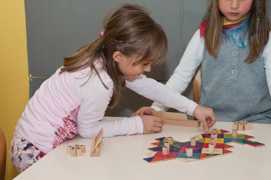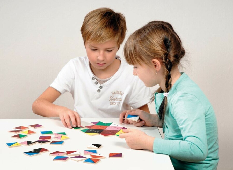 Leg passende driehoeken tegen elkaar en vorm rijen of perfecte vierkanten. Onderweg oefen je tellen, schatten en rekenen op niveau. Het spel werkt voor meerdere leeftijden en differentieert vanzelf. De vrolijke kleuren helpen bij vergelijken en het bespreken van strategieën.
