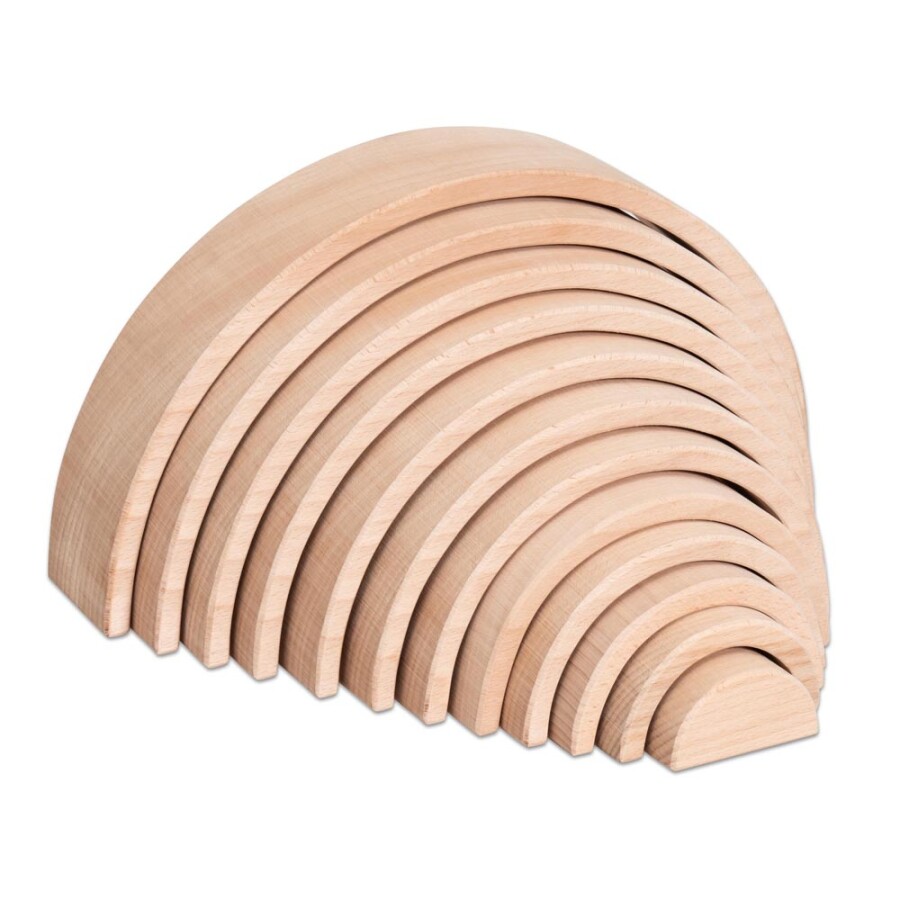 De regenboog stapelset in houtskleur is een veelzijdig speelgoed dat kinderen vanaf 12 maanden uitdaagt en stimuleert. Deze grote, 12-delige set is gemaakt van beukenhout en biedt eindeloze mogelijkheden voor spel en ontwikkeling. Kinderen kunnen de stukken stapelen, sorteren op grootte of gebruiken als een spannende knikkerbaan. Het natuurlijke hout nodigt uit tot ontdekken en bevordert de verbeelding en creativiteit. Perfect voor gebruik in kinderdagverblijven en basisscholen.