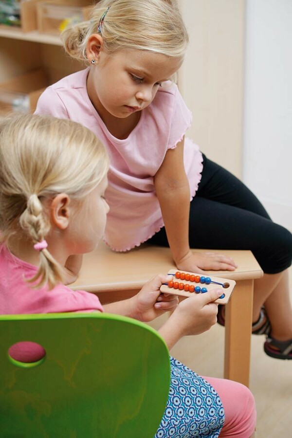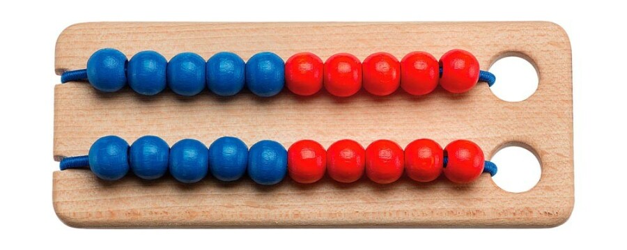 Het rood-blauwe rekenplankje maakt hoeveelheden tot twintig zichtbaar, handig voor beginnende rekenaars. Schuif kralen naar voren of achteren en laat splitsingen stap voor stap ontstaan. Het compacte formaat past in iedere lade of instructiekit.