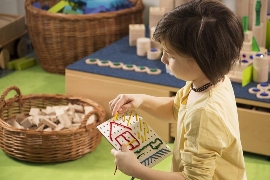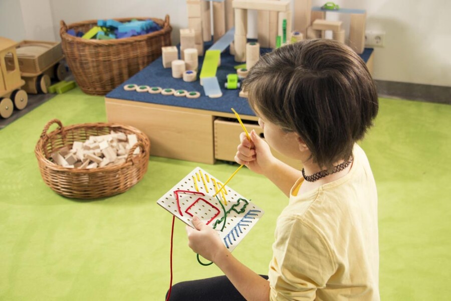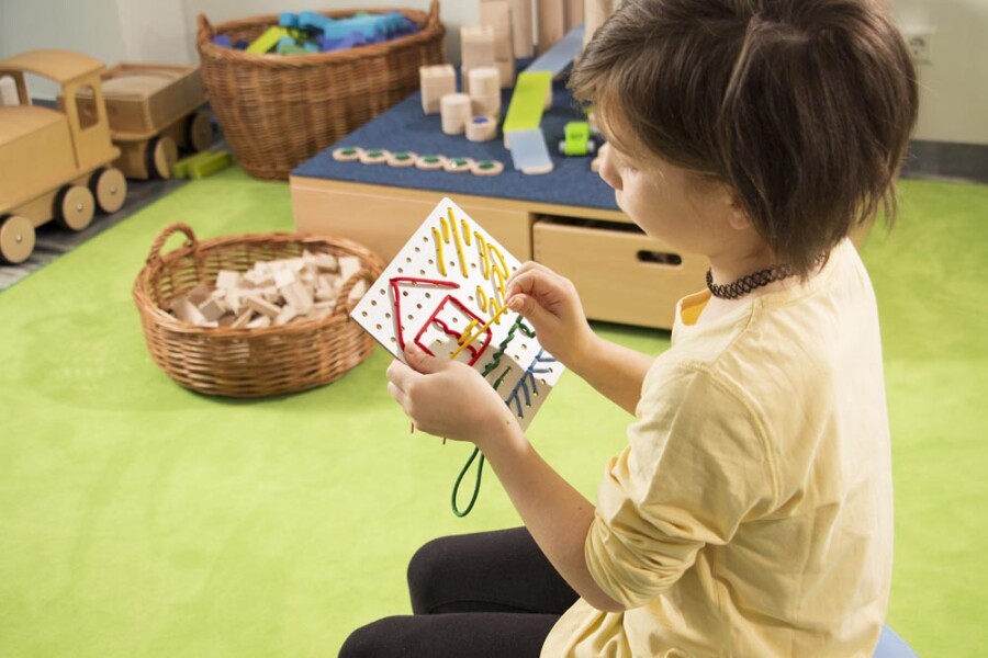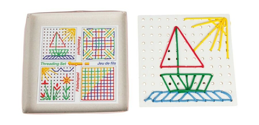 Rijgen, concentreren en mooie patronen maken. Kinderen versieren huizen en stadsranden of verzinnen eigen figuren. De verschillende boorgaten dagen uit tot nieuwe routes. Fijn voor rustig spelen, motoriek en doorzettingsvermogen.
