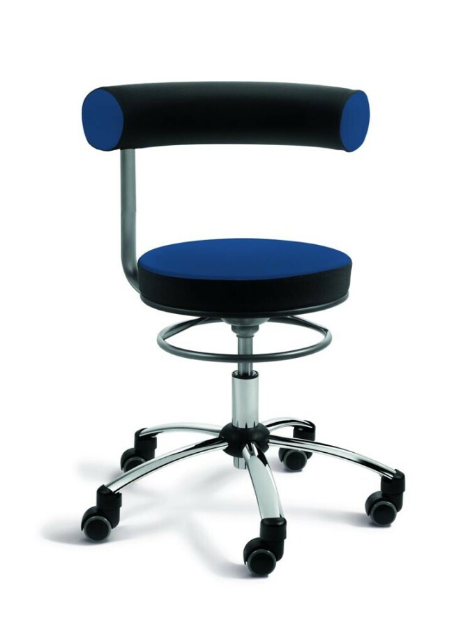 Deze ergonomische stoel ondersteunt actief zitten in de klas en thuis voor jong en oud. De 360° steun dient als rugleuning, zijsteun of extra steunpunt, afhankelijk van de taak. Met de ronde ring pas je de zithoogte moeiteloos aan van 41 tot 52 centimeter. De ronde zitting heeft een sterke kern en blauwe stof die prettig ademt. Belastbaar tot 110 kilo en geschikt vanaf circa zes jaar; basisdiameter 56 centimeter.