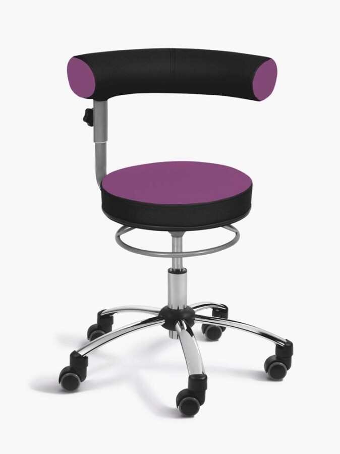 Deze ergonomische stoel helpt kinderen en volwassenen rechtop en gevarieerd te zitten in klas en thuis. De 360° draaibare leuning gebruik je als rugsteun, zijsteun of om even op te leunen. Met de bedieningsring stel je de zithoogte snel in van 41 tot 52 cm. Het ronde kussen met stevige schuimkern zit comfortabel en stimuleert actief zitten. Geschikt vanaf 6 jaar en belastbaar tot 110 kg, dus ideaal voor uiteenlopende gebruikers. Deze uitvoering heeft kunstleer in paars.