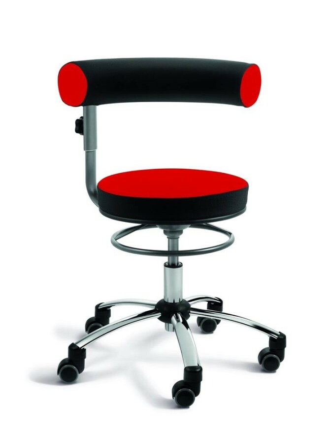 Deze ergonomische stoel helpt kinderen en volwassenen rechtop en gevarieerd te zitten in klas en thuis. De 360° draaibare leuning gebruik je als rugsteun, zijsteun of om even op te leunen. Met de bedieningsring stel je de zithoogte snel in van 41 tot 52 cm. Het ronde kussen met stevige schuimkern zit comfortabel en stimuleert actief zitten. Geschikt vanaf 6 jaar en belastbaar tot 110 kg, dus ideaal voor uiteenlopende gebruikers. Deze uitvoering heeft stof in rood.