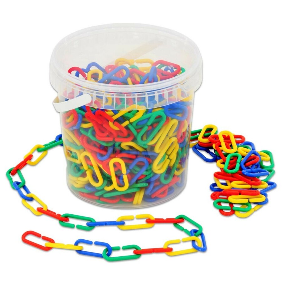 De schakelketting in 4 kleuren is een veelzijdig hulpmiddel voor de rekenles. Met deze 500 kleurrijke schakels kunnen kinderen op een speelse manier leren over getallen, hoeveelheden en lengtes. Door de schakels eenvoudig in elkaar te haken, kunnen ze patronen maken en logische reeksen vormen. Ideaal voor het meten, sorteren en tellen van voorwerpen. Geschikt voor kinderen vanaf 3 jaar.
