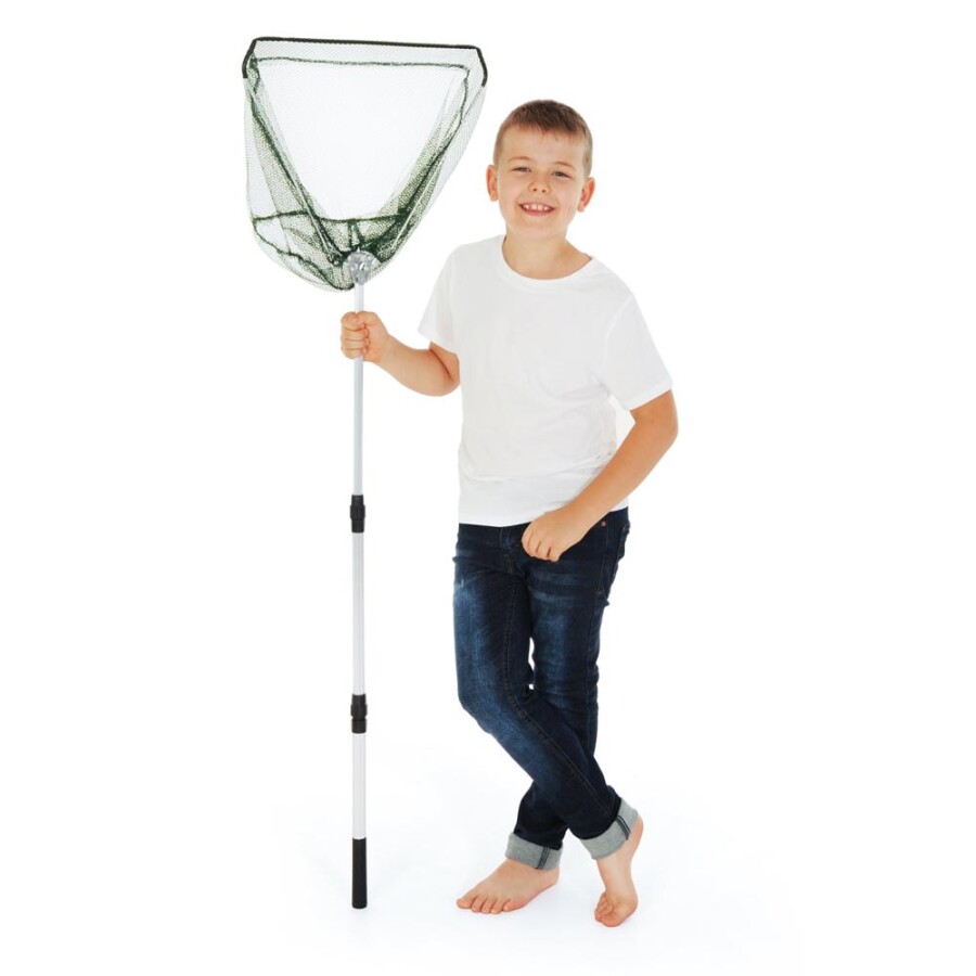 Dit stevige schepnet helpt bij onderzoeken, vangen en schoonmaken in tuin, vijver of zwembad. De telescoopsteel schuif je van kort naar lang, zodat kinderen en volwassenen prettig werken. De driehoekige opening pakt handig hoeken en randen mee. Aluminium en polyester maken het net licht en duurzaam.