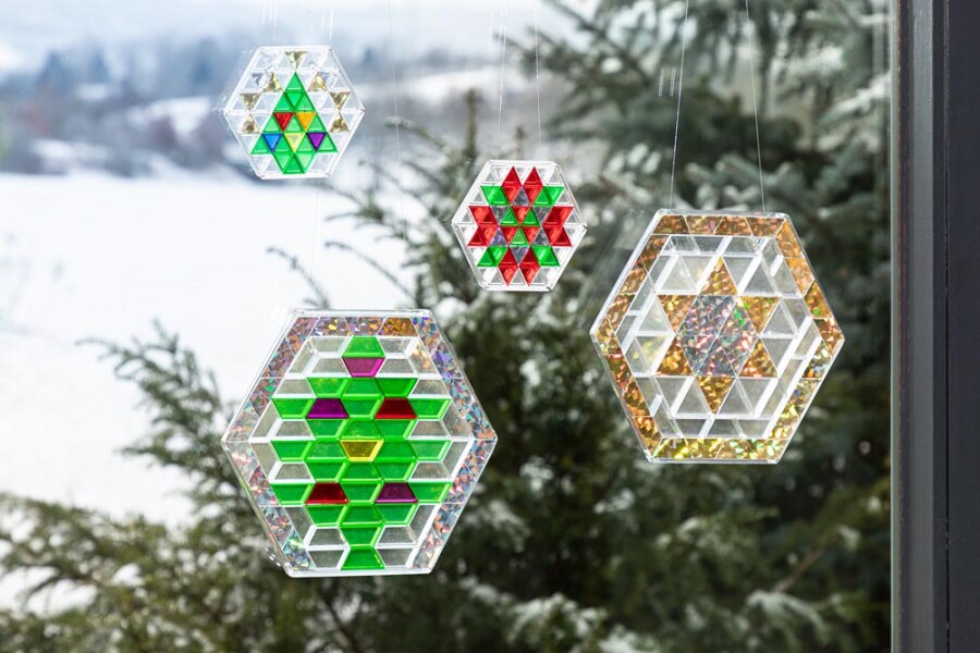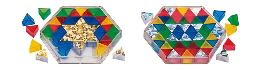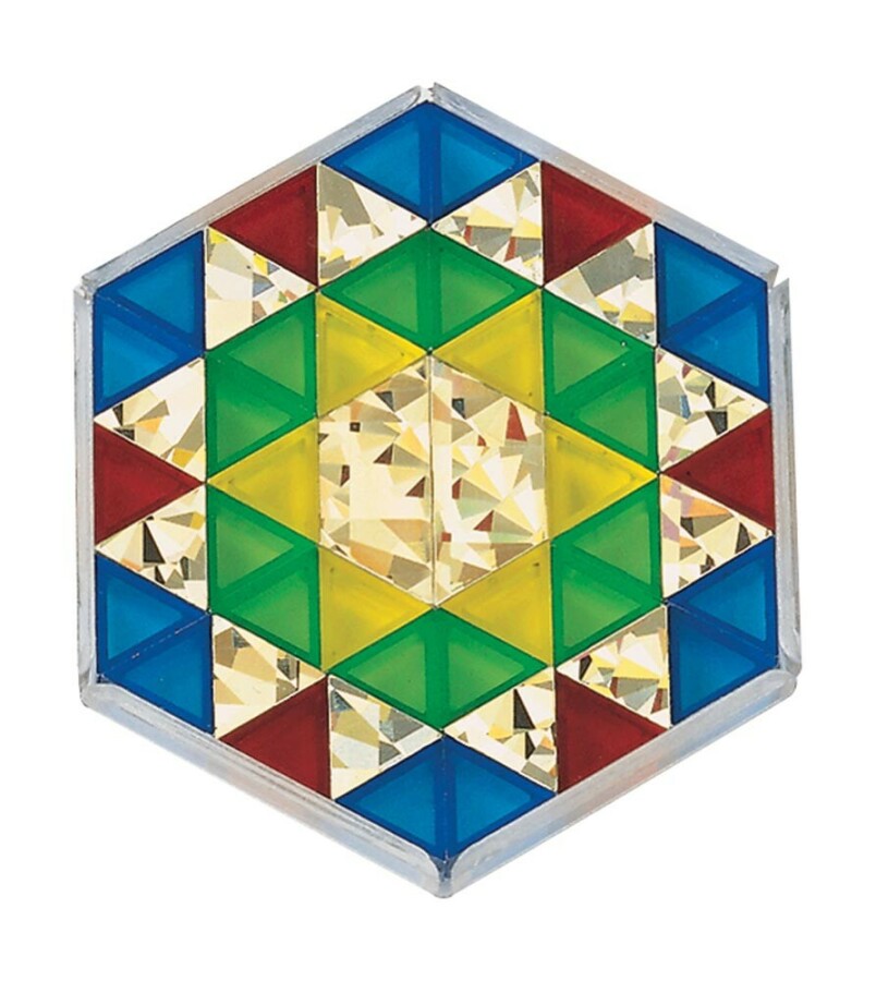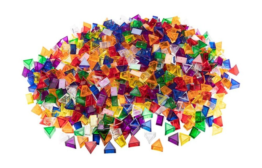 Transparante driehoekjes geven patronen een extra dimensie door licht en kleur. Op tafel, lichtpaneel of bij het raam werkt het magisch. Grote hoeveelheid, dus iedereen kan meedoen. Ideaal voor ontwerpen, symmetrie en gesprekken over kleur.