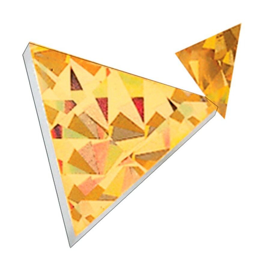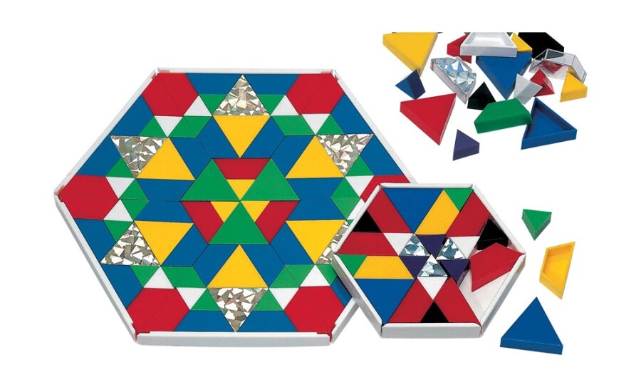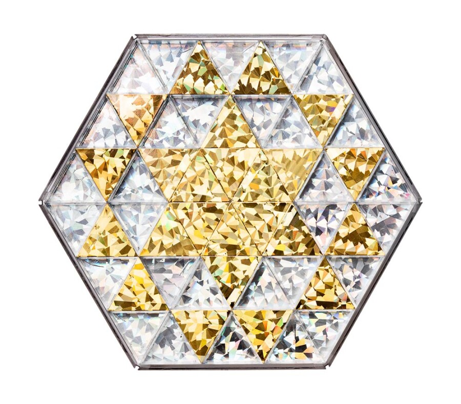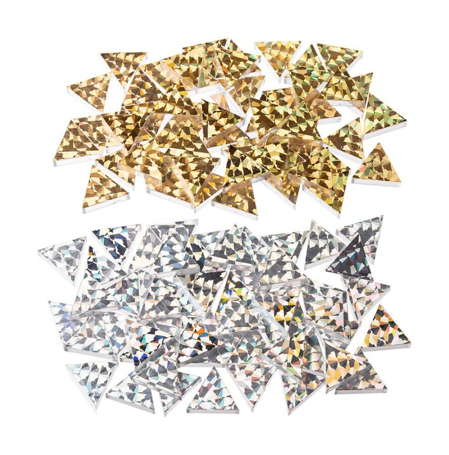 Deze grote glitterdriehoekjes zorgen voor fonkelende patronen bij elke beweging. Het licht speelt met goud en zilver, steeds net anders. Perfect voor lichttafel, rekenactiviteiten en vrij spel. Combineer met andere vormen of legframes.