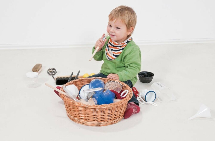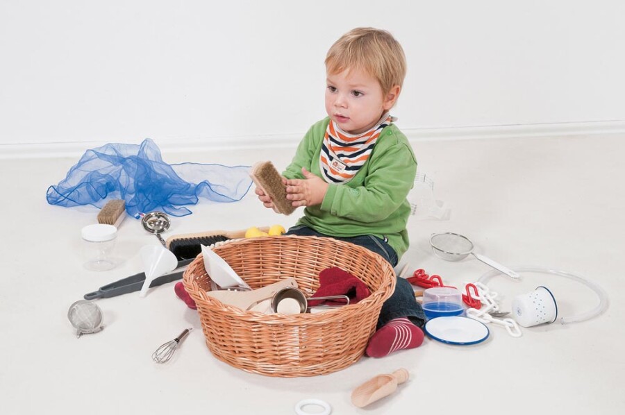 - Voorbeelden: bekers, lepels, zeef, knijper, doekjes, bel, borsteltje