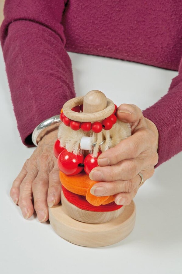 Een compacte sensorische set voor kleine groepen of om mee te nemen. Kinderen voelen, sorteren en stapelen ringen van verschillende materialen en praten over textuur en kleur. Alles past in de zachte fluwelen buidel.