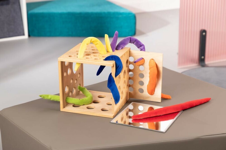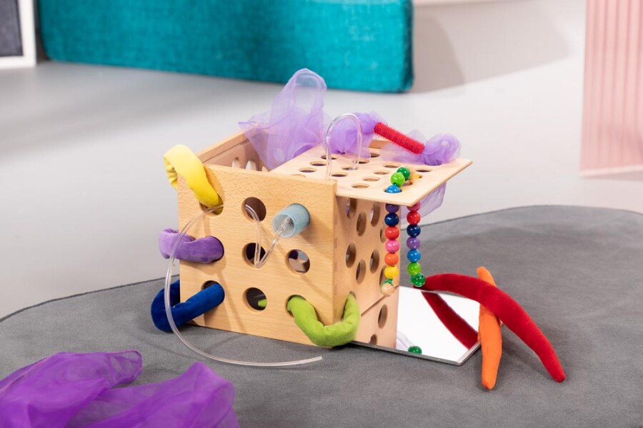 Kleurrijke stofpuntjes nodigen uit tot praten, sorteren en voelen. Ze passen ook in activiteiten met de Cubelix, zoals stoppen en trekken. Ideaal voor taalspel rond kleuren, tellen en eigenschappen. Handzaam formaat voor kleine handen.