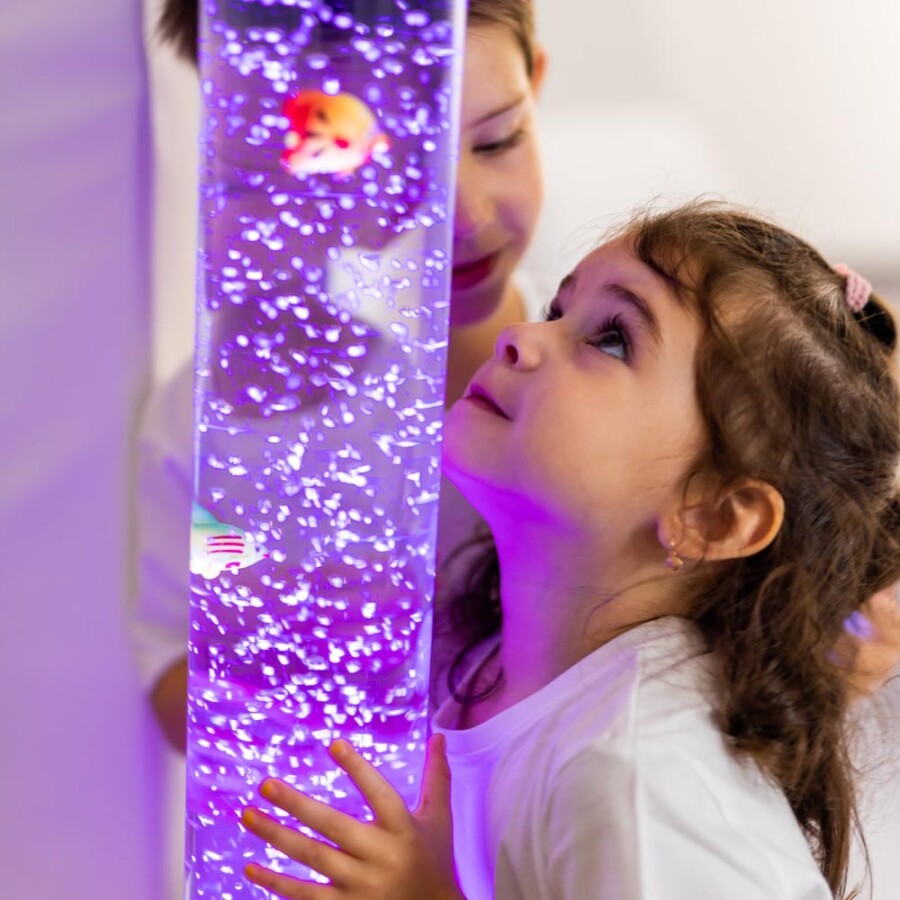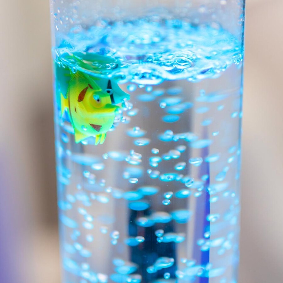 Rustig licht en zachte bubbels helpen kinderen ontspannen en focussen, in klas en snoezelhoek. Deze waterzuil met LED kleurovergang laat kleuren rustig wisselen en nodigt uit tot kijken en praten. De meegeleverde drijvende visjes maken het spel nog aantrekkelijker en ondersteunen sensopatische activiteiten. Vul de kolom met gedestilleerd water en sluit de netadapter aan. Gaat prettig samen met prikkelverwerking, taalprikkels en een kalme start of afsluiting van de dag.