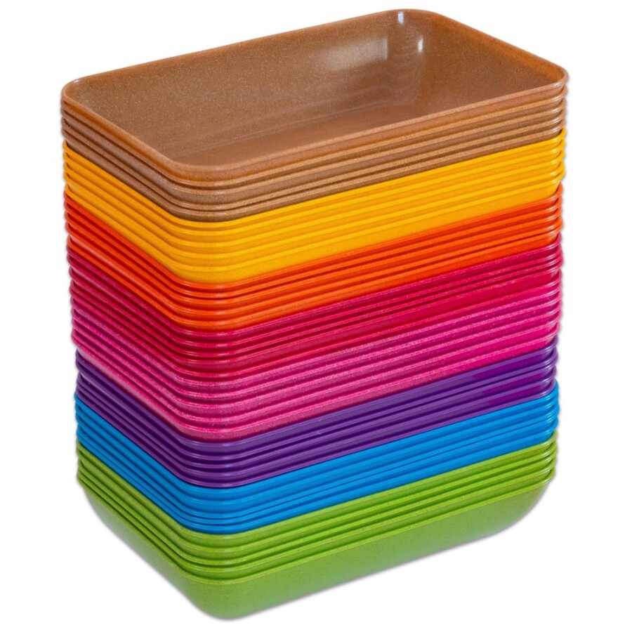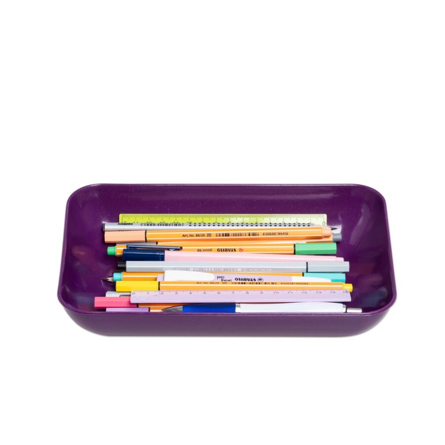 Deze set van 5 paarse schalen is perfect voor gebruik in de klas of kinderopvang. Gemaakt van bioplastic met zichtbare houtvezels en een subtiele houtgeur, zijn deze schalen duurzaam en milieuvriendelijk. Ze zijn ideaal voor het organiseren van knutselmaterialen, pennen, scharen of zelfs vloeistoffen zoals inktwater. Dankzij hun stapelbaarheid en robuustheid passen ze perfect in elke onderwijsomgeving. Let wel op: ze zijn niet vaatwasserbestendig en moeten uit direct zonlicht worden gehouden.