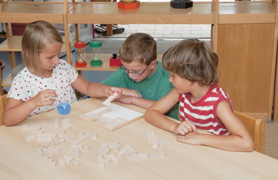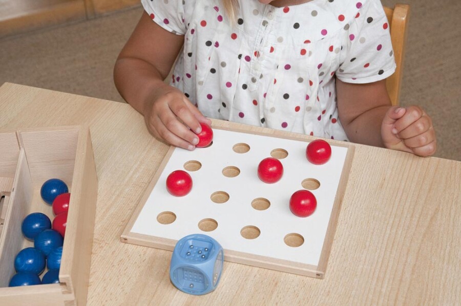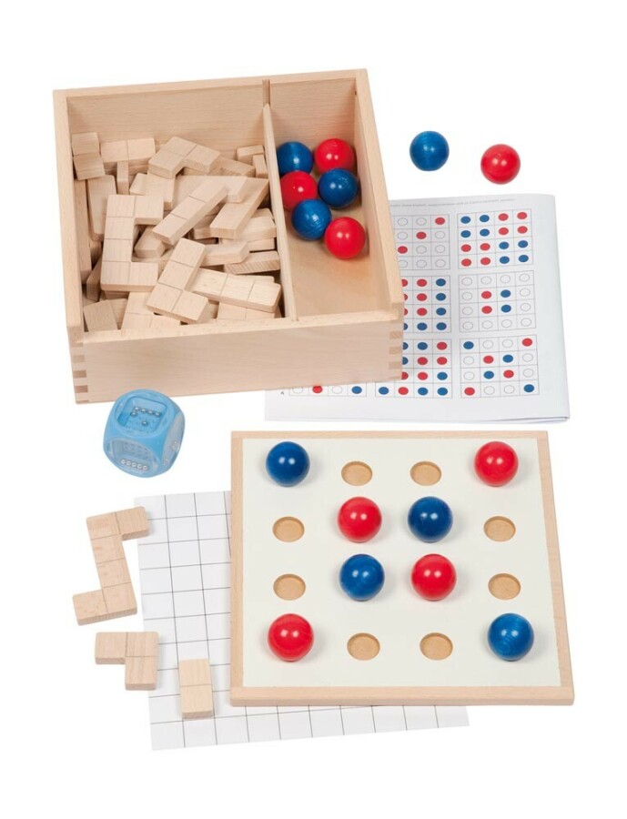 Rekenen met dobbelsteen, kralen en legstukken wordt hier tastbaar en heel speels. Kinderen schatten ogen, zien hoeveelheden en vullen stap voor stap het bord. Varianten laten je vrij kiezen: leggen in het raam of spelen met het raster. Solo of in kleine groep, met duidelijke uitleg en kopieerbladen.
