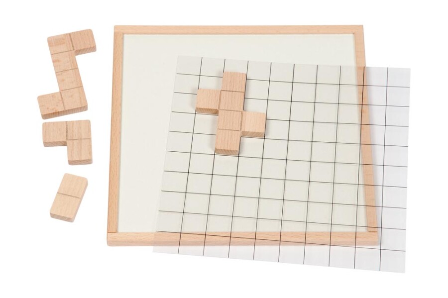 - 52 legstukken en dubbelzijdig spelbord met rasterfolie