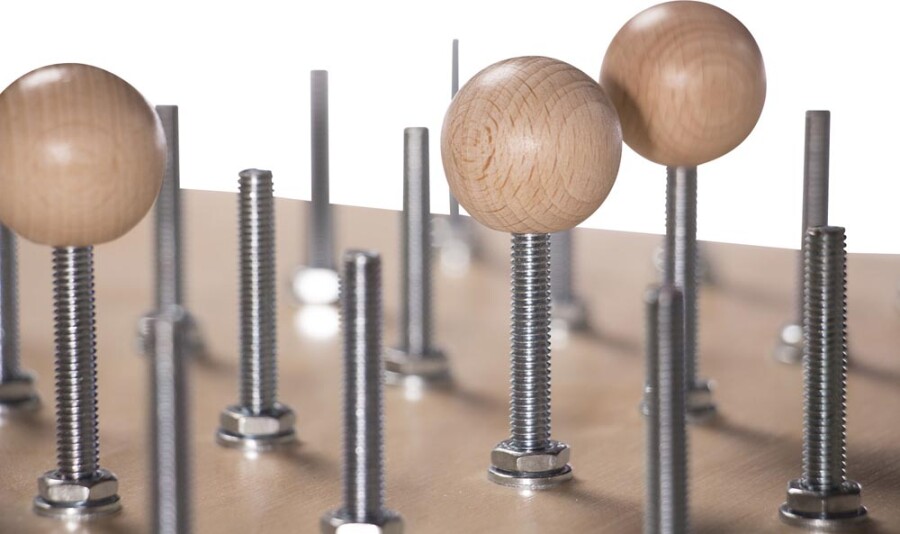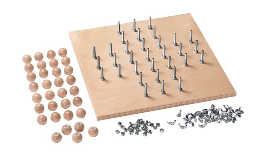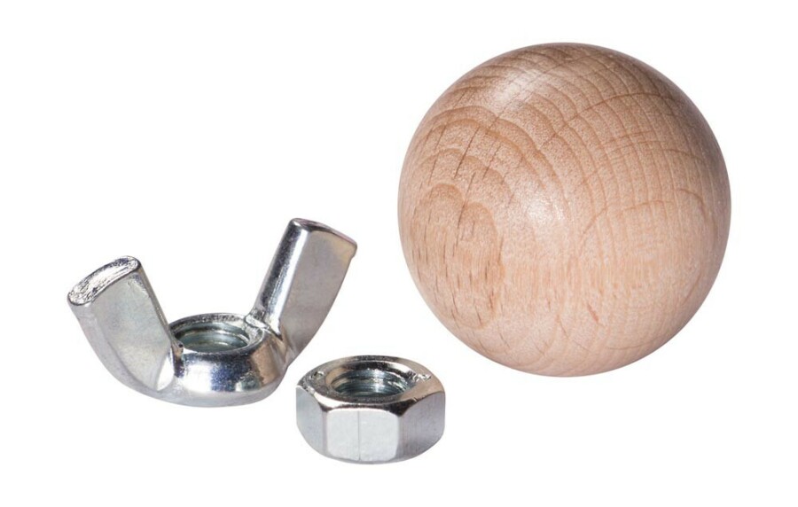 - Speelstukken: vleugelmoeren, zeskantmoeren en houten ballen