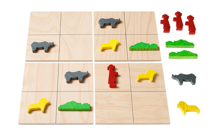 - Inhoud: 4 spelborden 18 x 18 cm en 4 richtingkaarten