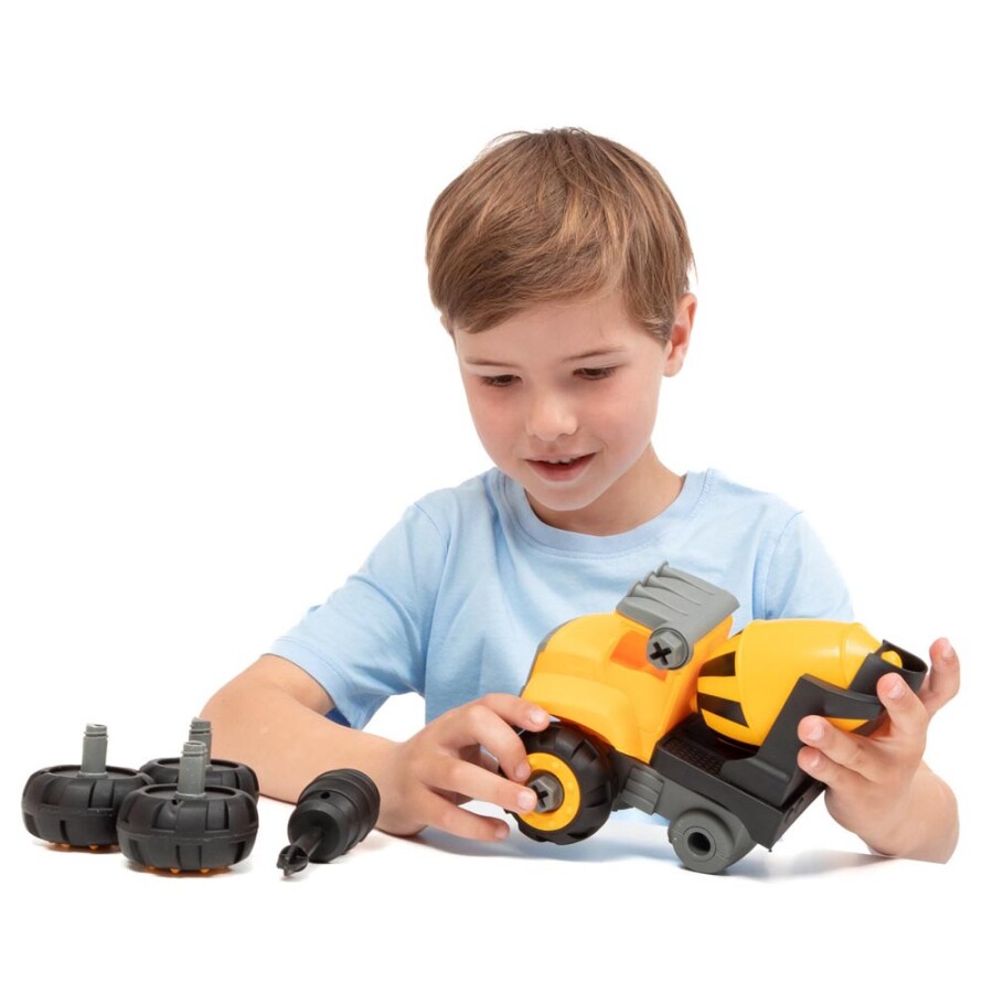 - Inclusief kinderschroevendraaier; cabine, wielen en trommel afneembaar