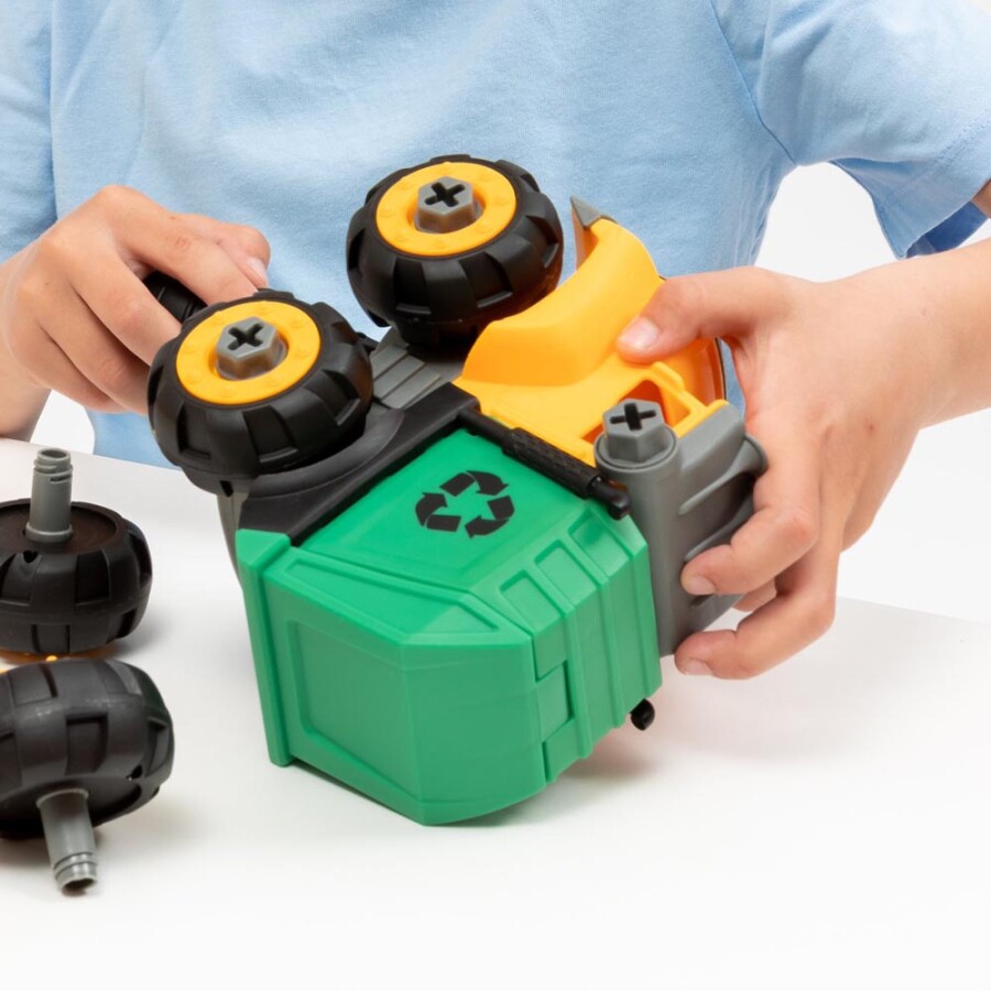 Deze vuilniswagen nodigt uit tot herkenbaar rollenspel in klas en thuis. De achterklep kan open voor laadspel, zonder holle opslagruimte binnenin. Kunststof is stevig en blijft mooi, ook bij enthousiast gebruik. Met de kinderschroevendraaier schroeven kinderen onderdelen los en terug. Zo oefenen ze samenwerken, taal en oorzaak-gevolg.