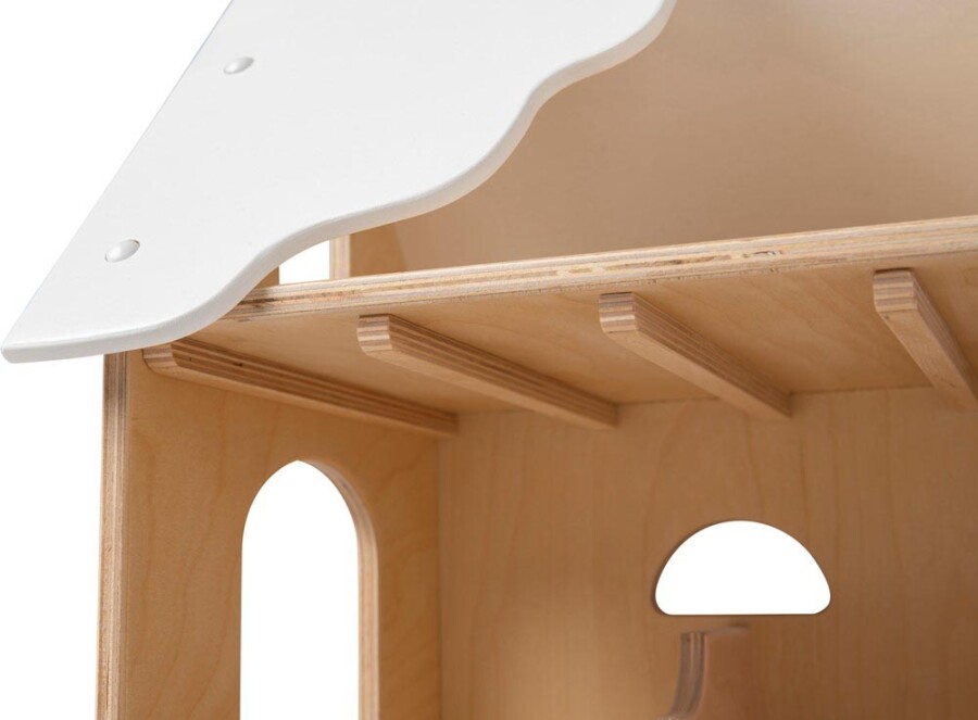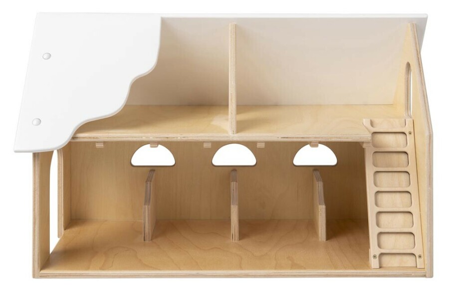 Het ontwerp heeft een gedeeltelijk open dak, zodat je van alle kanten kunt spelen. Dit maakt het toegankelijk voor kinderen van verschillende leeftijden. De boerderij is gemaakt van duurzaam berken multiplex, wat zorgt voor stevigheid en een lange levensduur. Kinderen kunnen er steeds weer mee spelen.