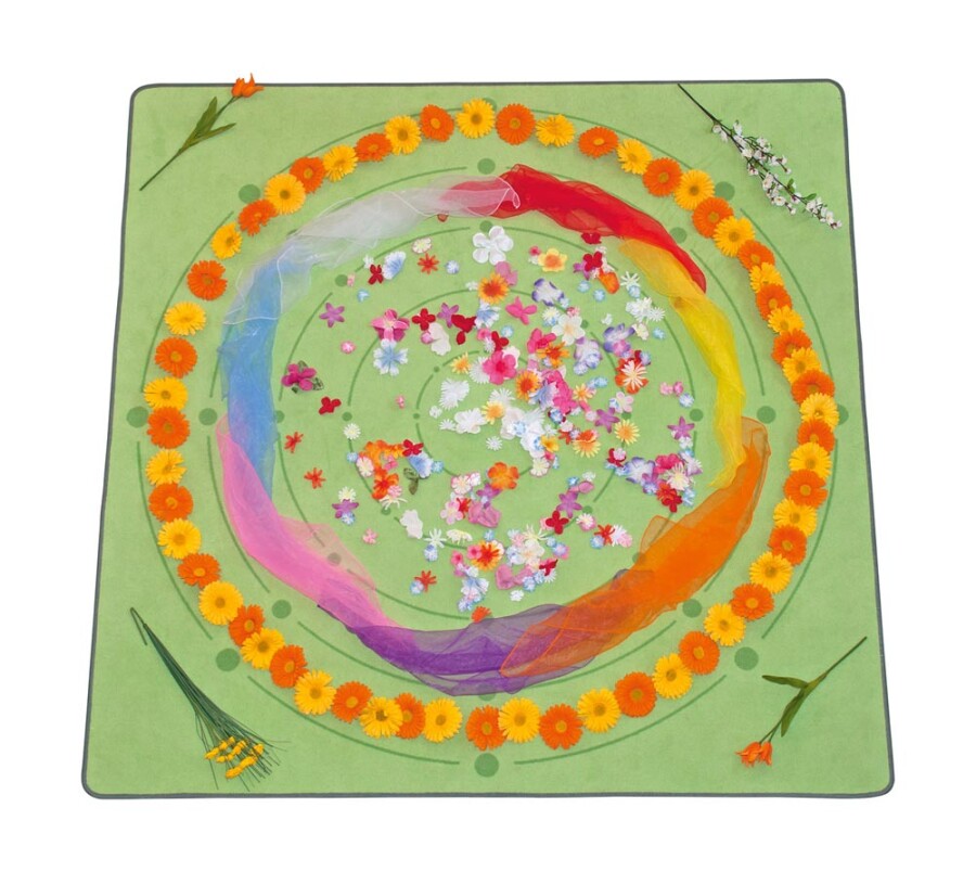 Ruime speelmat voor kring, beweegspel en grote mandala’s. De cirkels helpen bij ordenen, samenwerken en concentratie. Gebruik natuurlijke vondsten of eigen legmaterialen voor thema’s door het jaar. De velours toplaag voelt prettig en is brandvertragend. Sterk genoeg voor dagelijks gebruik.
