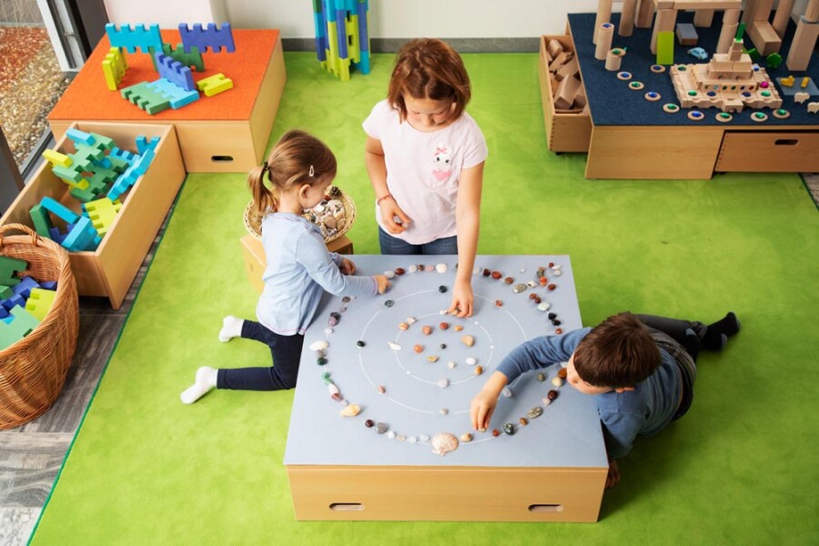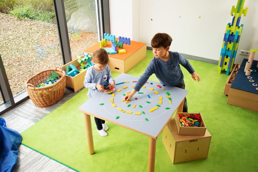 Compact legkleed met rustige, symmetrische cirkels voor mandala’s en sorteerspel. Ideaal voor tafelwerk, verhogingen of kleine kring. Leggen brengt rust, concentratie en overzicht in de groep. De antislip achterkant houdt het kleed netjes op zijn plek. De toplaag is brandvertragend en slijtvast.