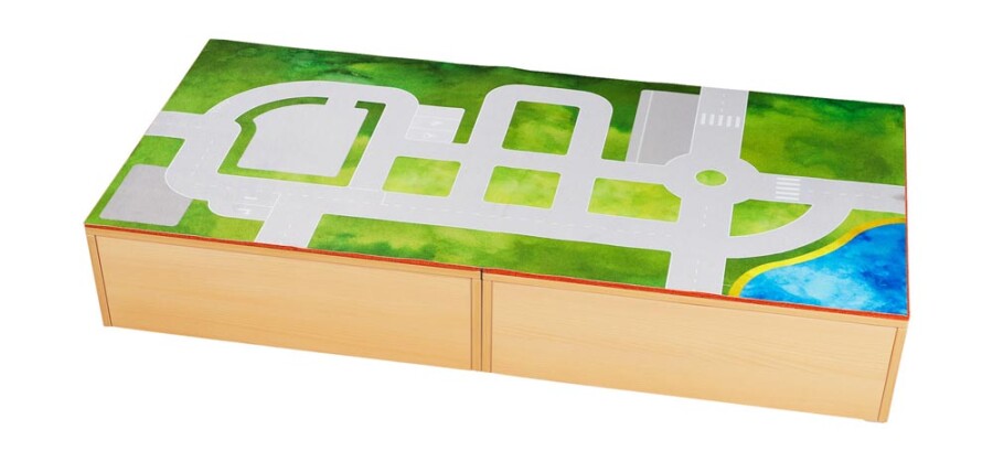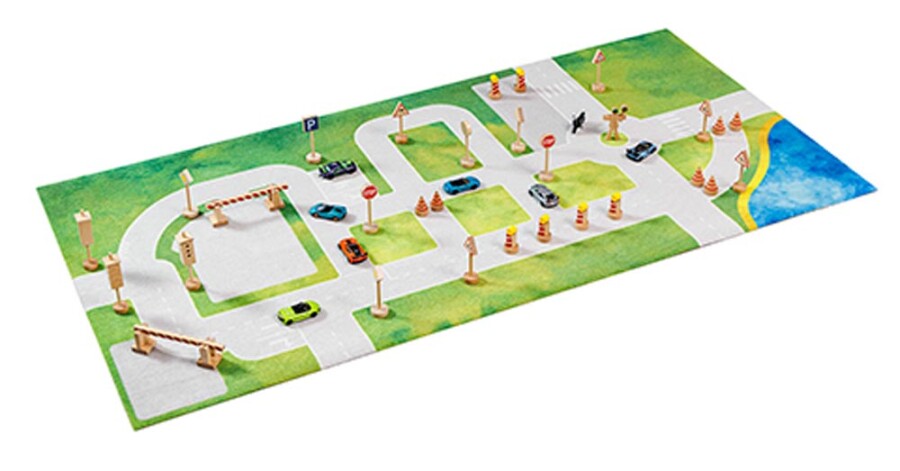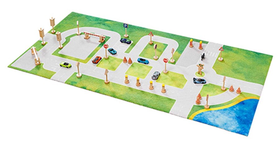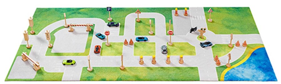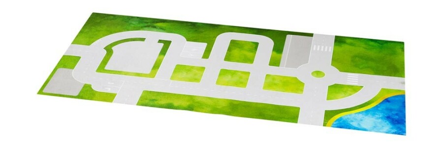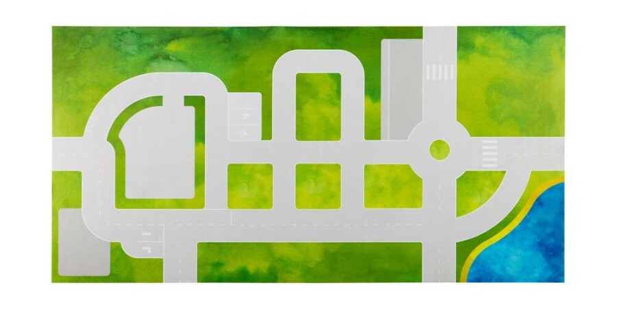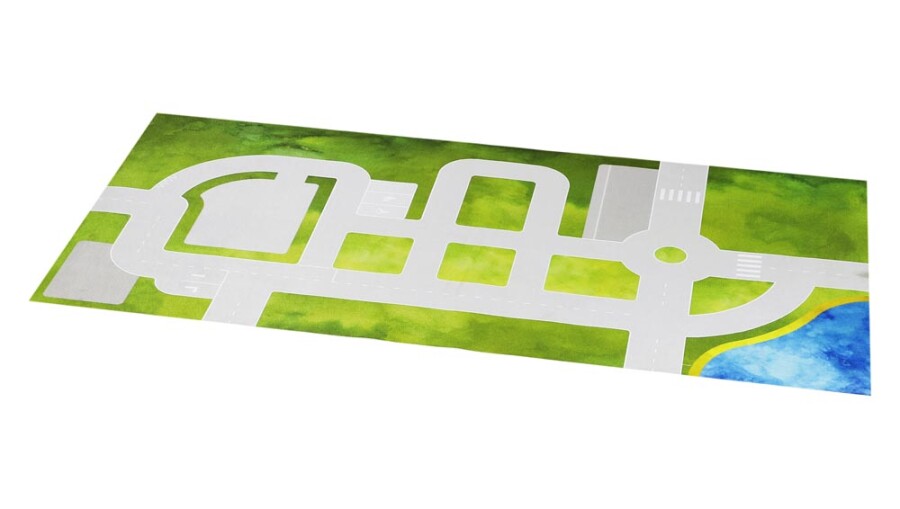 Een stevige speelmat met wegen en natuurelementen, ideaal voor in de klas en thuis. De antiâ€slip achterkant houdt de mat stevig op zijn plek tijdens spelen en bouwen. Het rustige, duidelijke ontwerp geeft kinderen ruimte voor eigen stadjes, wegennet en rollenspellen. Perfect te combineren met autootjes en bouwstenen om infrastructuur en verkeersregels spelenderwijs te oefenen. De bovenlaag is velours; de achterkant heeft een antisliplaag van latex. Je wast de mat met de hand, gebruik geen agressieve schoonmaakmiddelen en laat hem plat drogen.